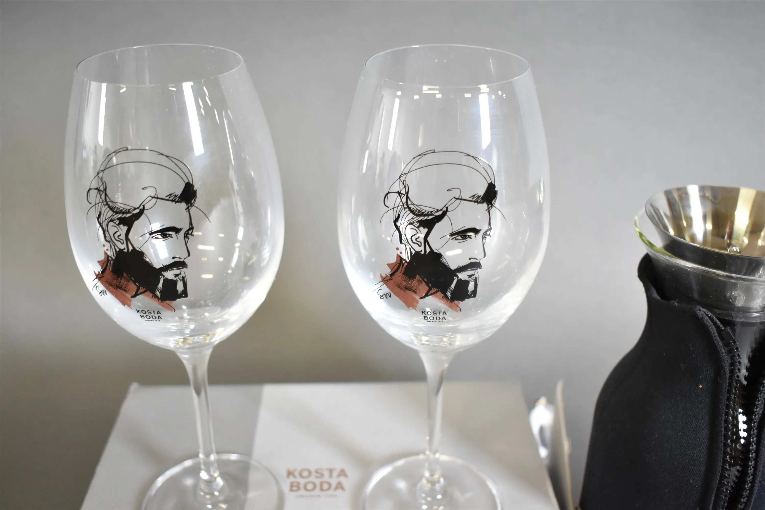 14753. Parti vinglas 2 st Sara Woodrow "All about you" Kosta Boda, karaff Eva Solo och ljuslyktor bla Orrefors, höjd på karaff 27 cm