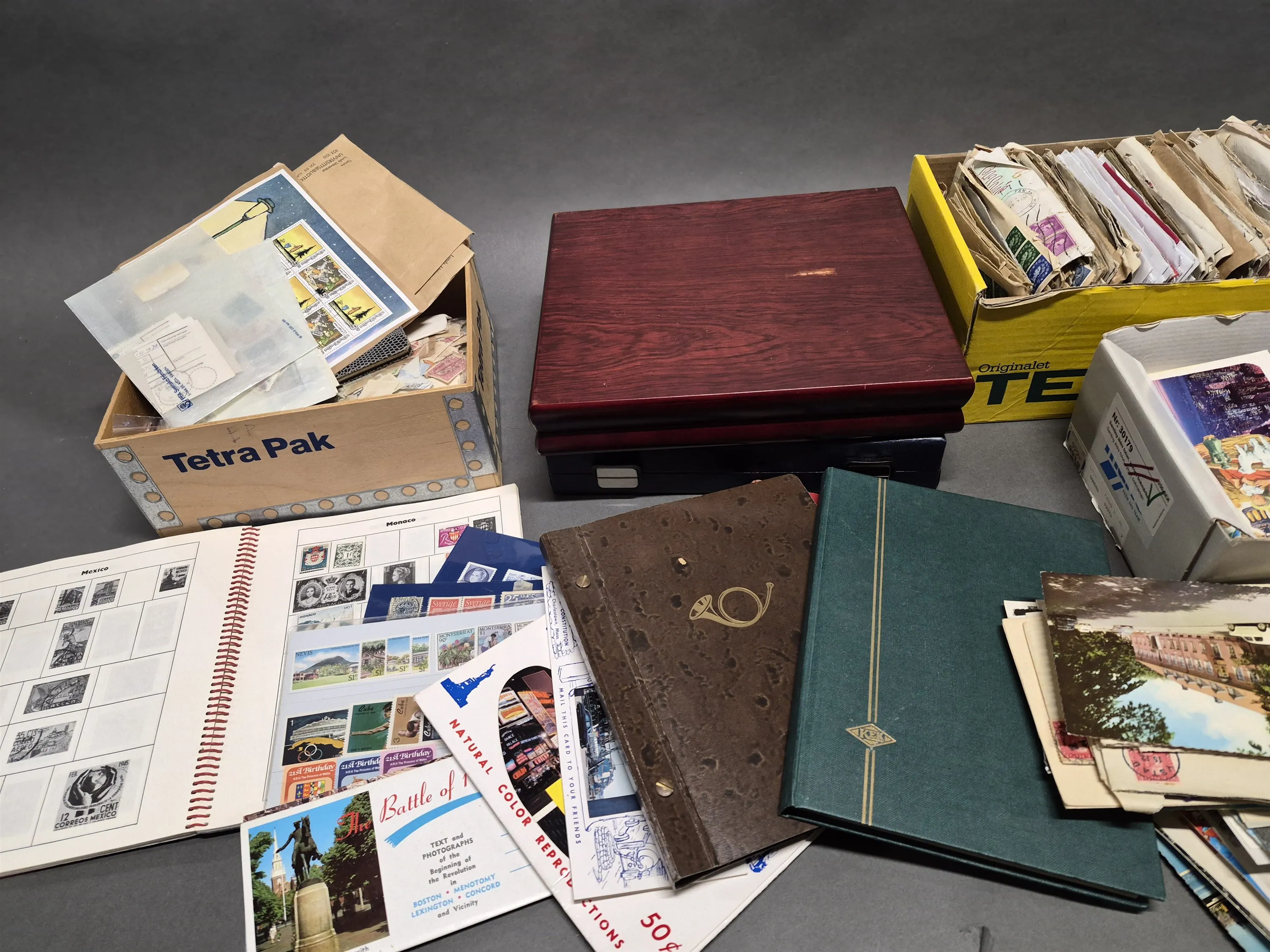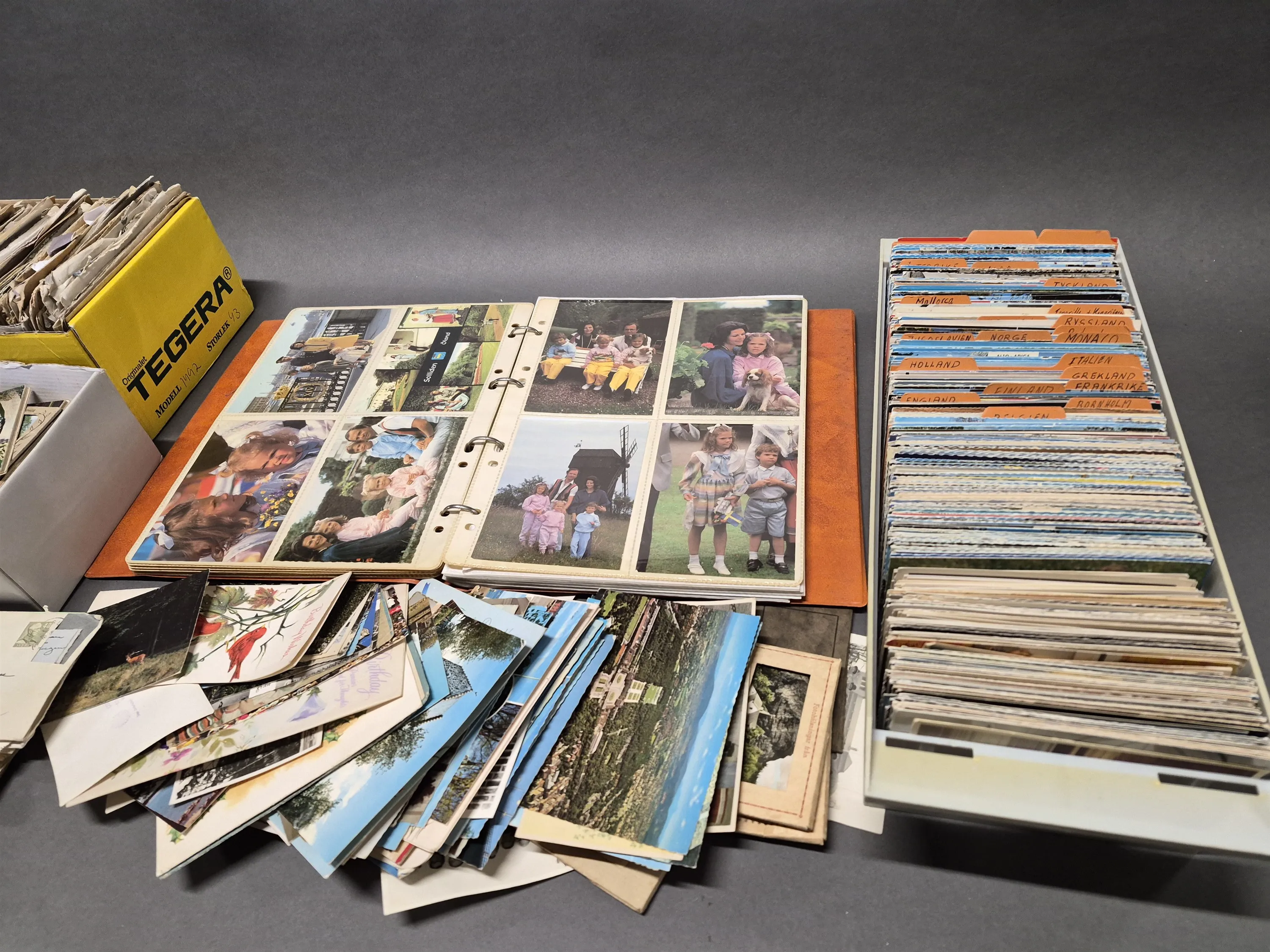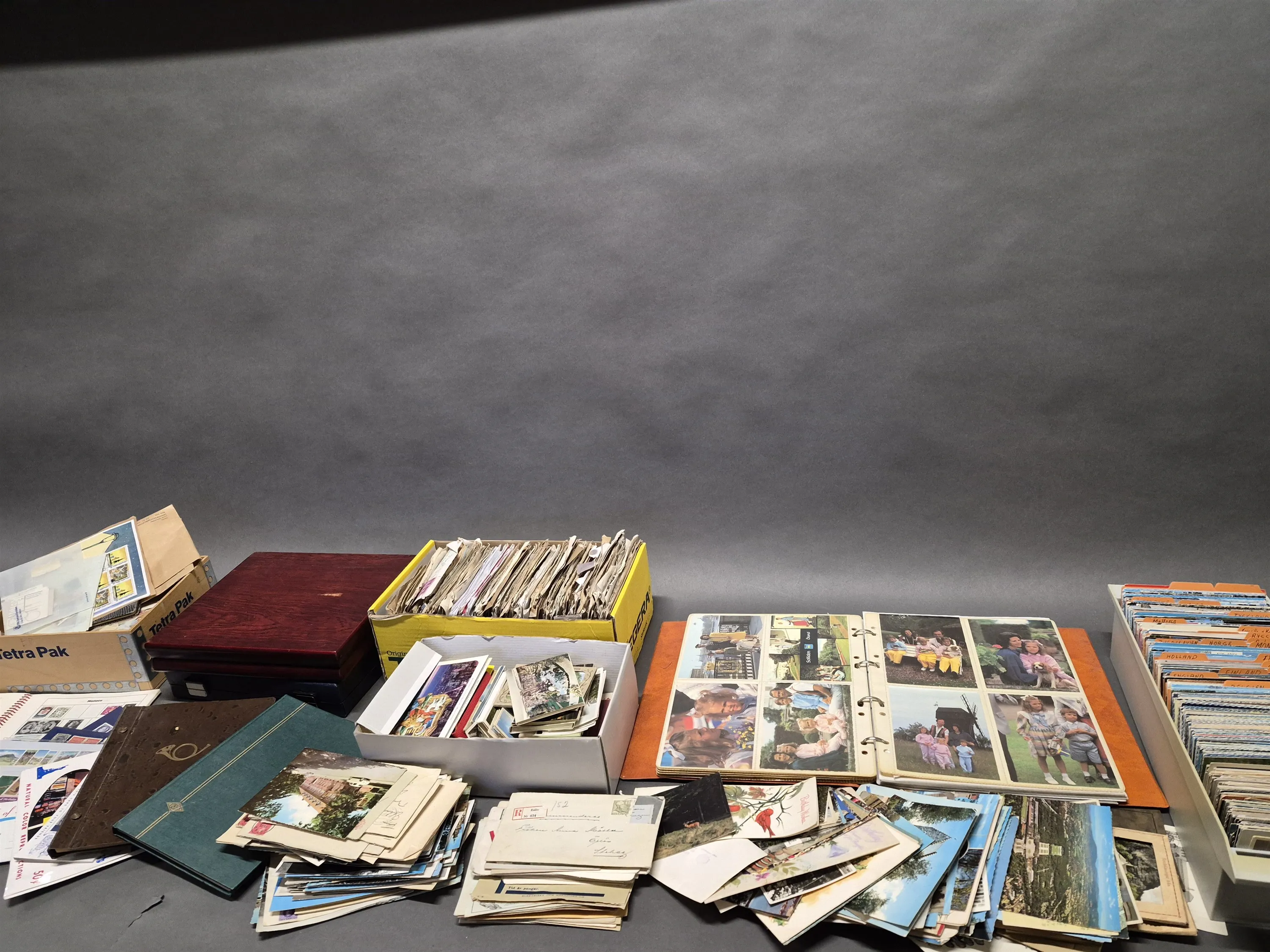 17656. Parti vykort, kuvert och frimärken, 2 lådor