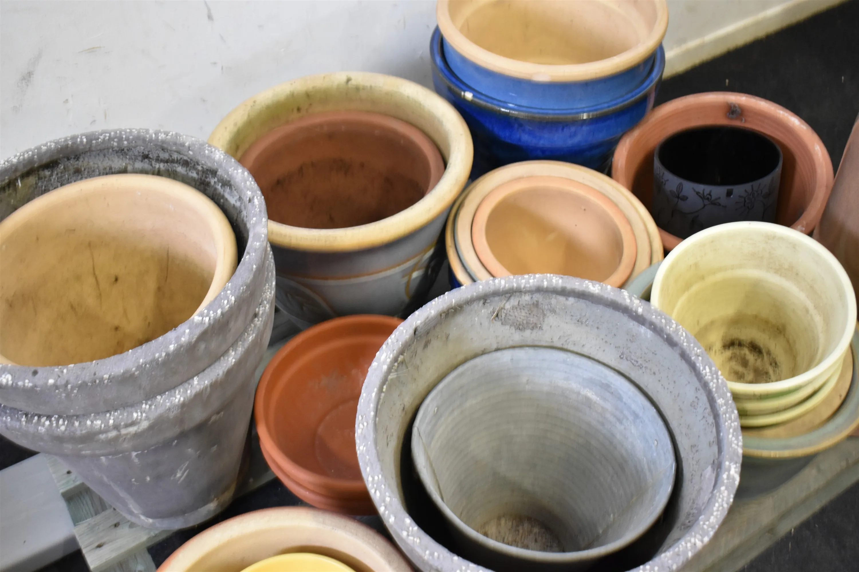 13522. Parti ytterkrukor, något nagg finns, högsta höjd 49 cm