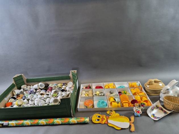20080. Parti äggkoppar och påsksaker, 2 lådor