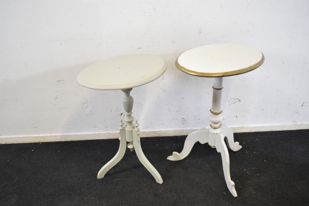 13062. Pelarbord 2 st vit och grå, högsta höjd 79 cm