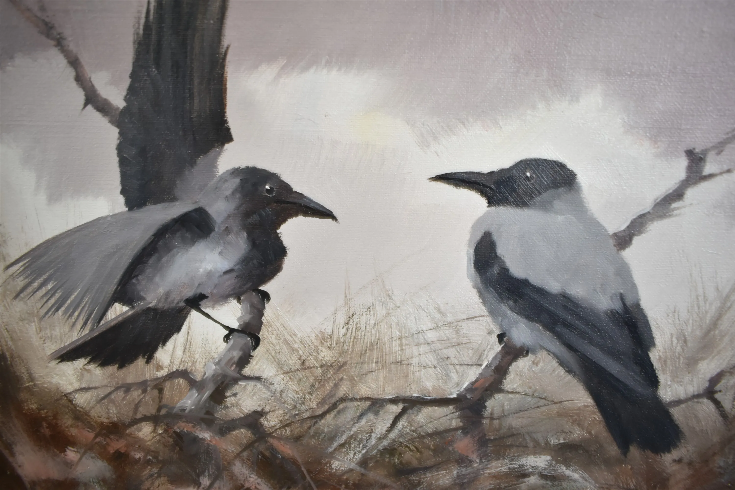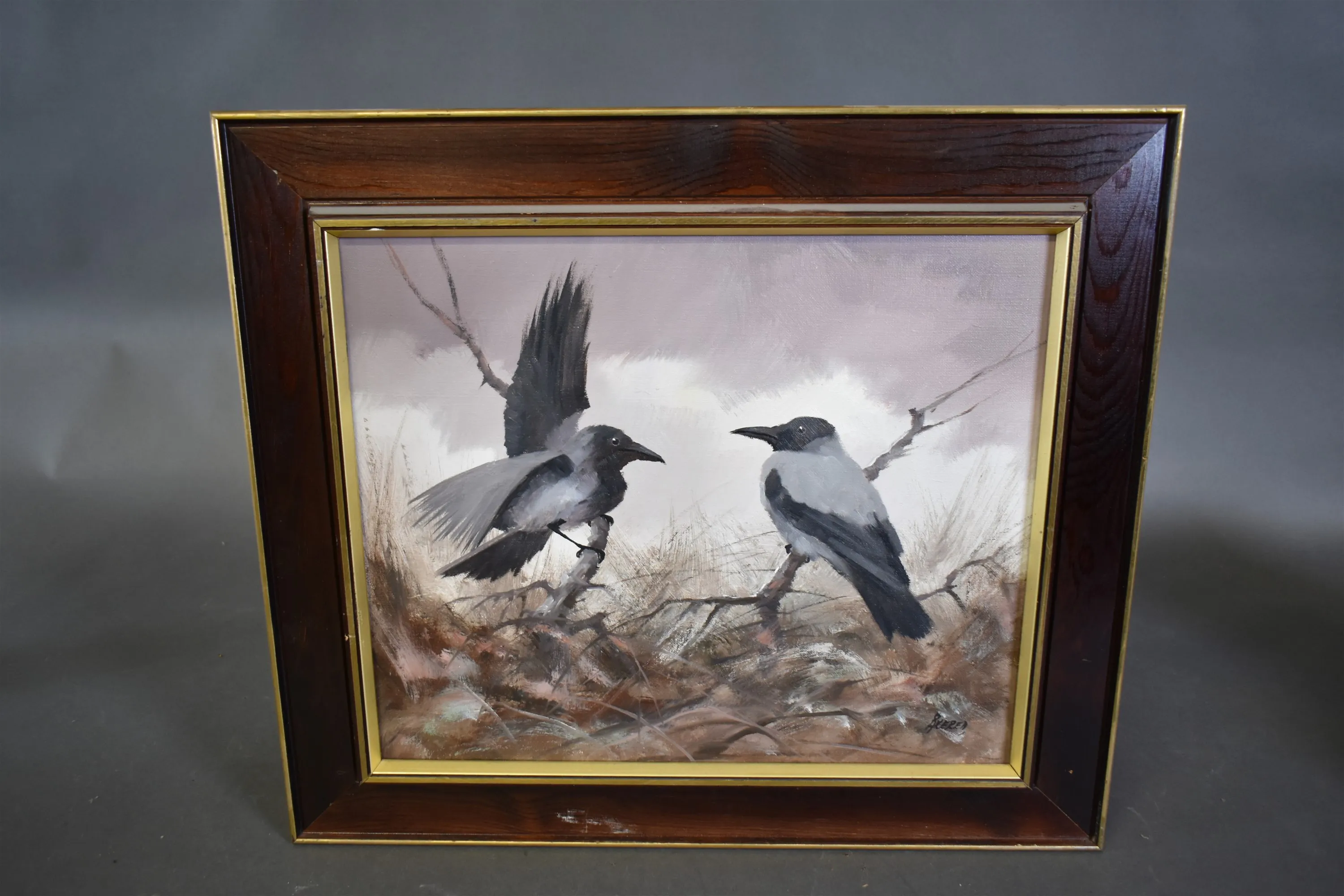 16732. Per Åkered olja på duk, "Kråkor" mått 60 x 52 cm