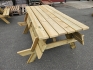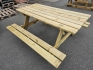 10365. Picknickbord tryckimpregnerat med fällbara sitsar, höjd 77 cm, längd 170 cm, bredd utfällda sitsar 156 cm
