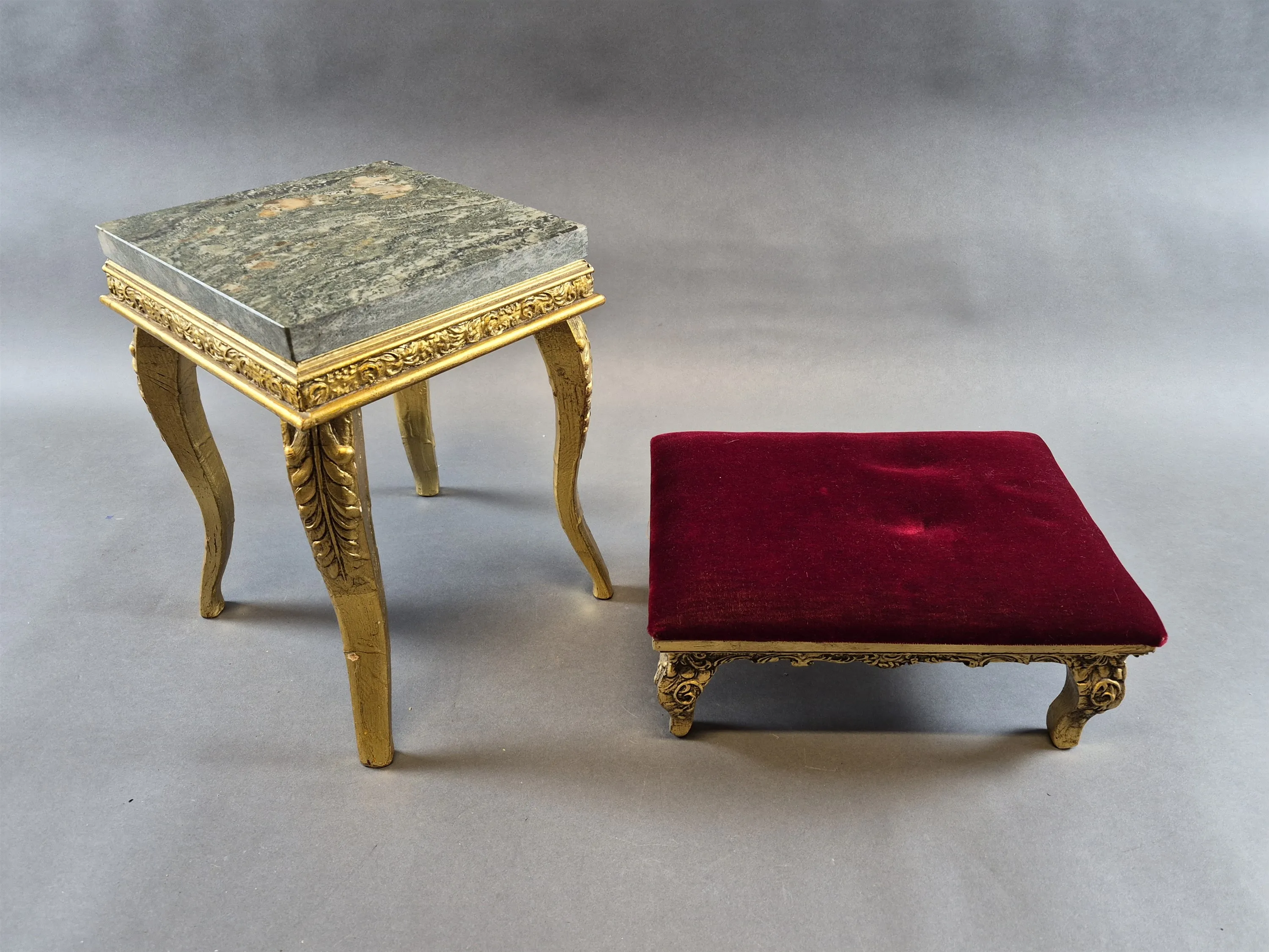 20408. Piedestal med marmorskiva & brudpall, högsta 38 cm