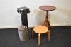 13592. Piedestal, pelarbord, pall och oljedunk, högsta höjd 75 cm