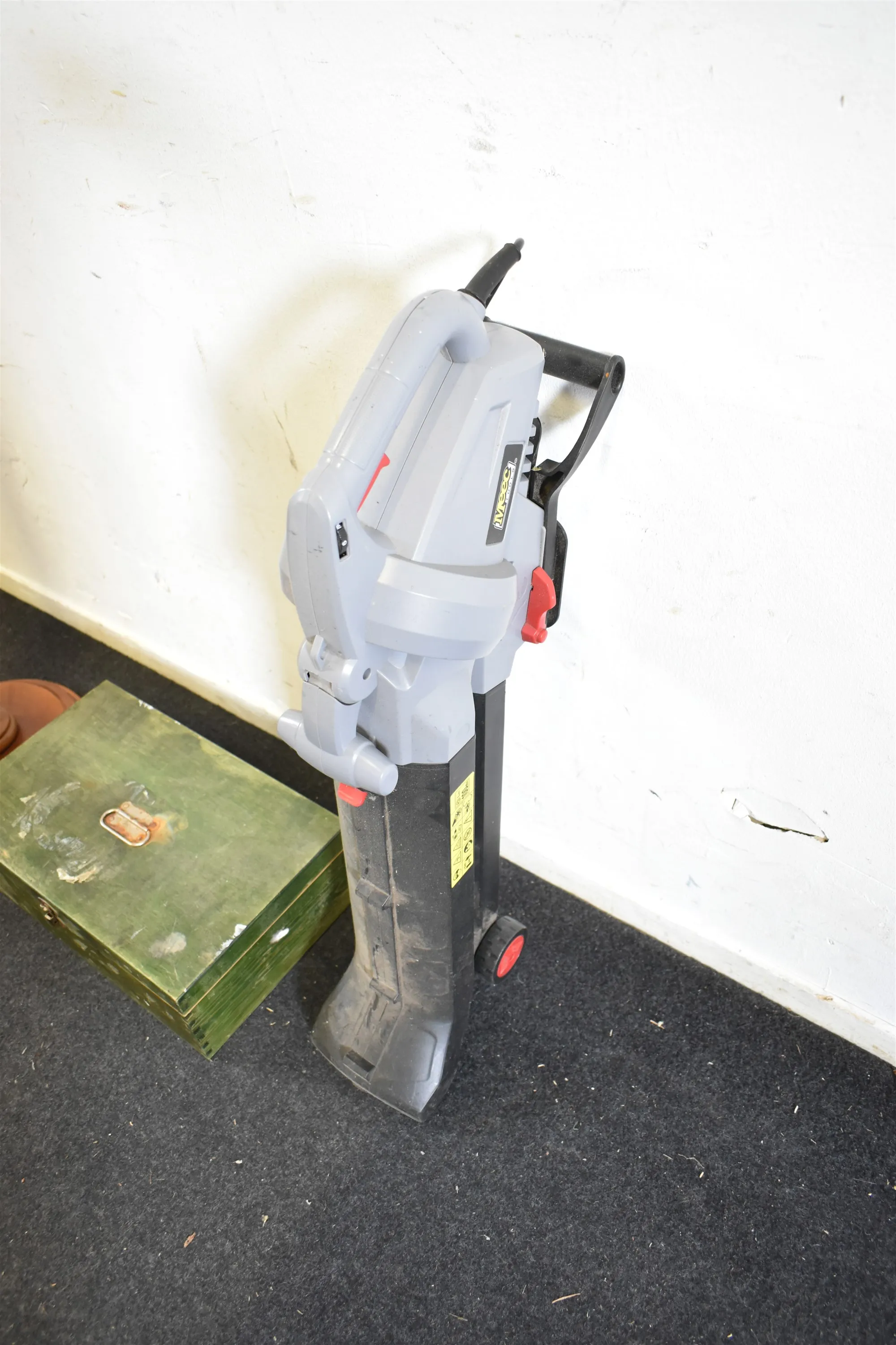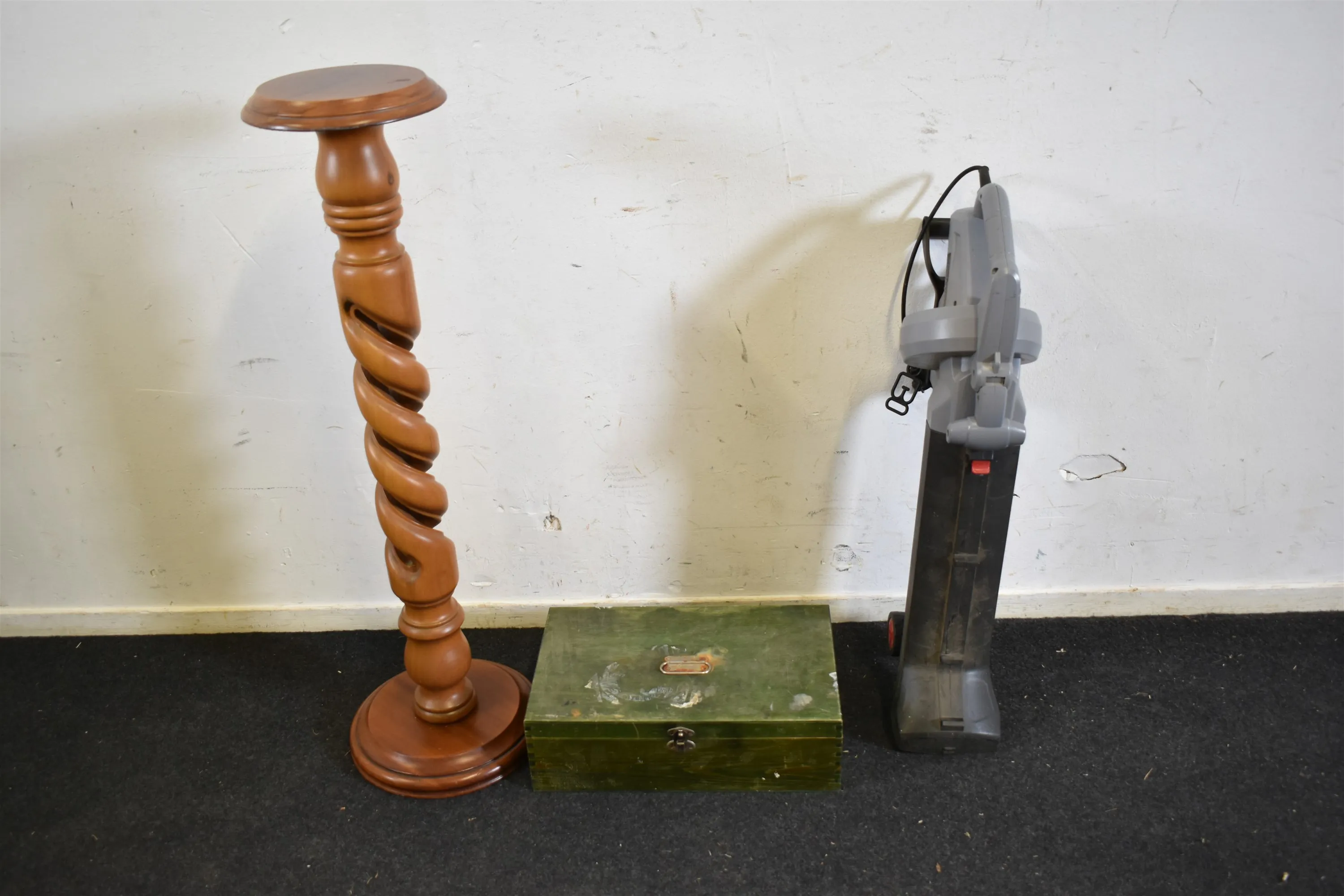 11953. Piedestal, trälåda och lövsug Meec, höjd på piedestal 90 cm