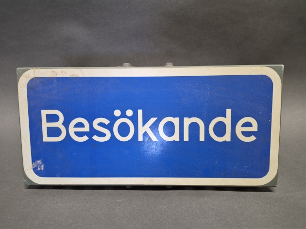 18978. Plåtskylt, Besökande, mått 23 x 48 cm