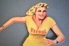 14734. Plåtskylt Pin up, Veedol, senare tillverkad, längd 40 cm
