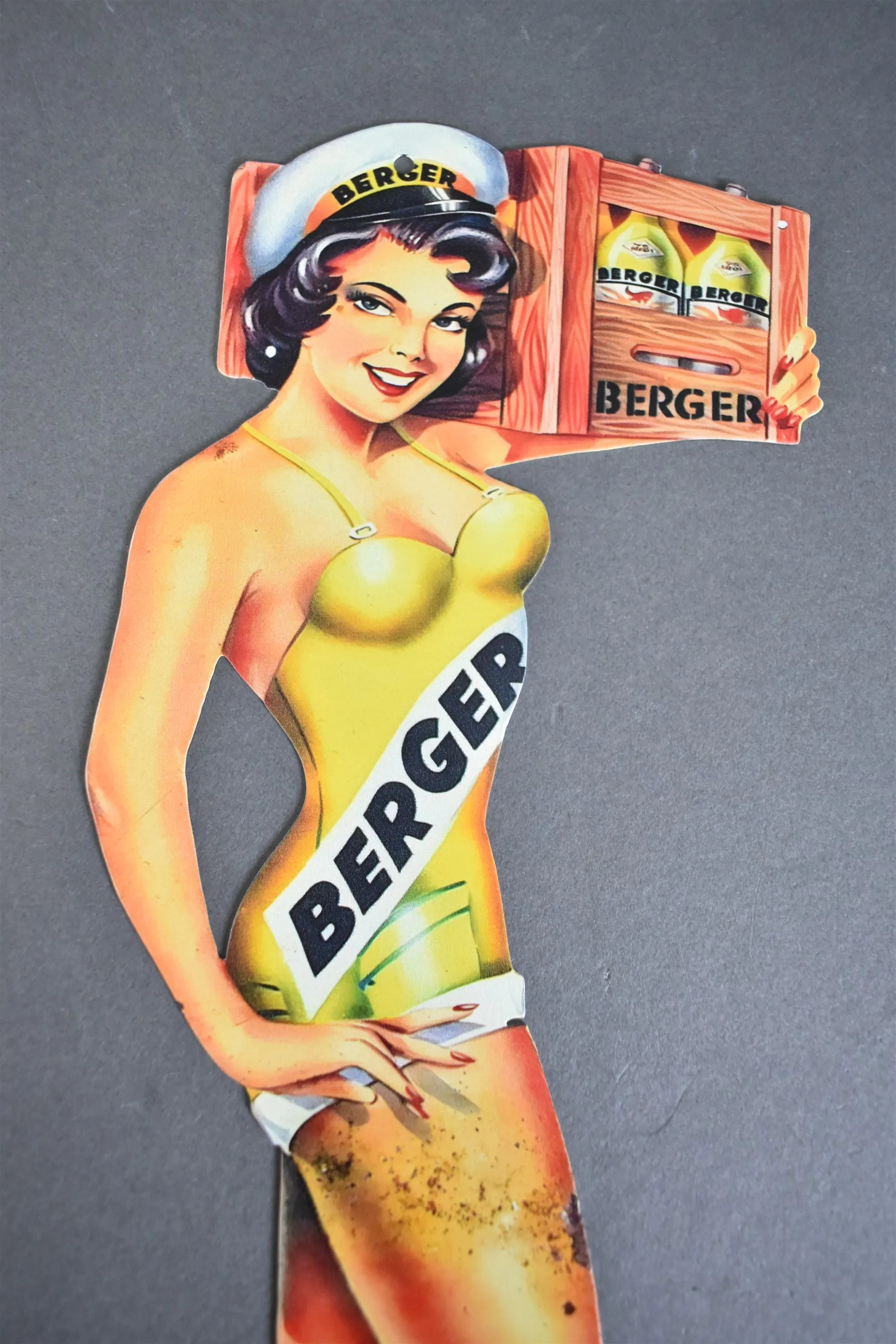 15607. Plåtskylt Pinuppa, BERGER, senare tillverkad, höjd 40 cm