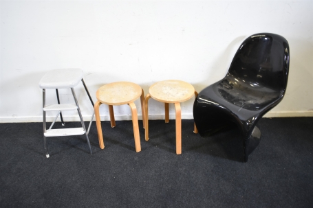 6541. Plaststol, pallar & kökspall, högsta 82 cm defekter finns