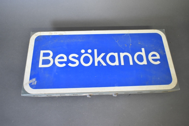 13233. Plåtskylt, Besökande, mått 23 x 48 cm