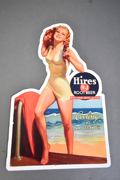 15609. Plåtskylt Pinuppa, Hires Root Beer, senare tillverkad, höjd 40 cm