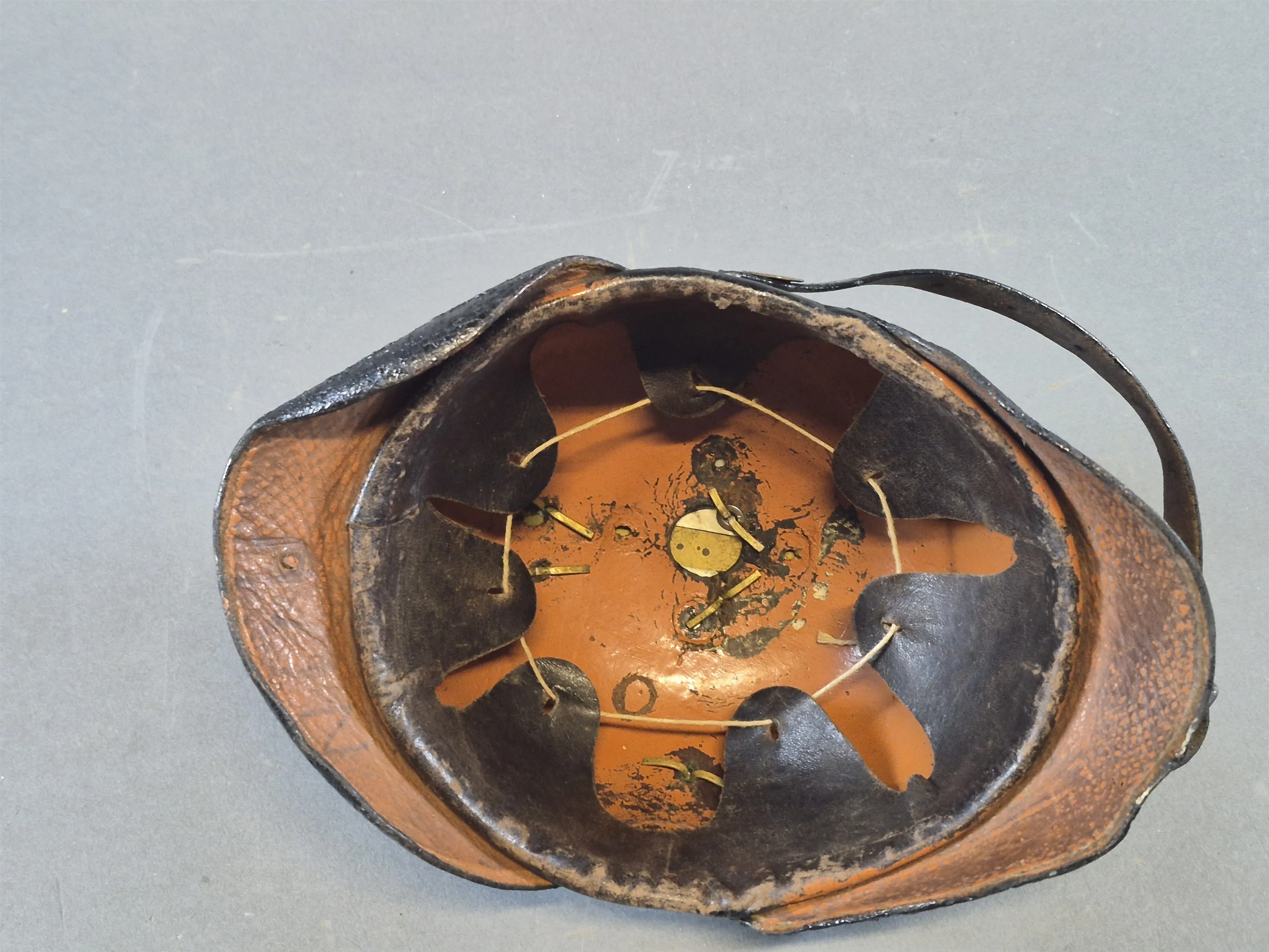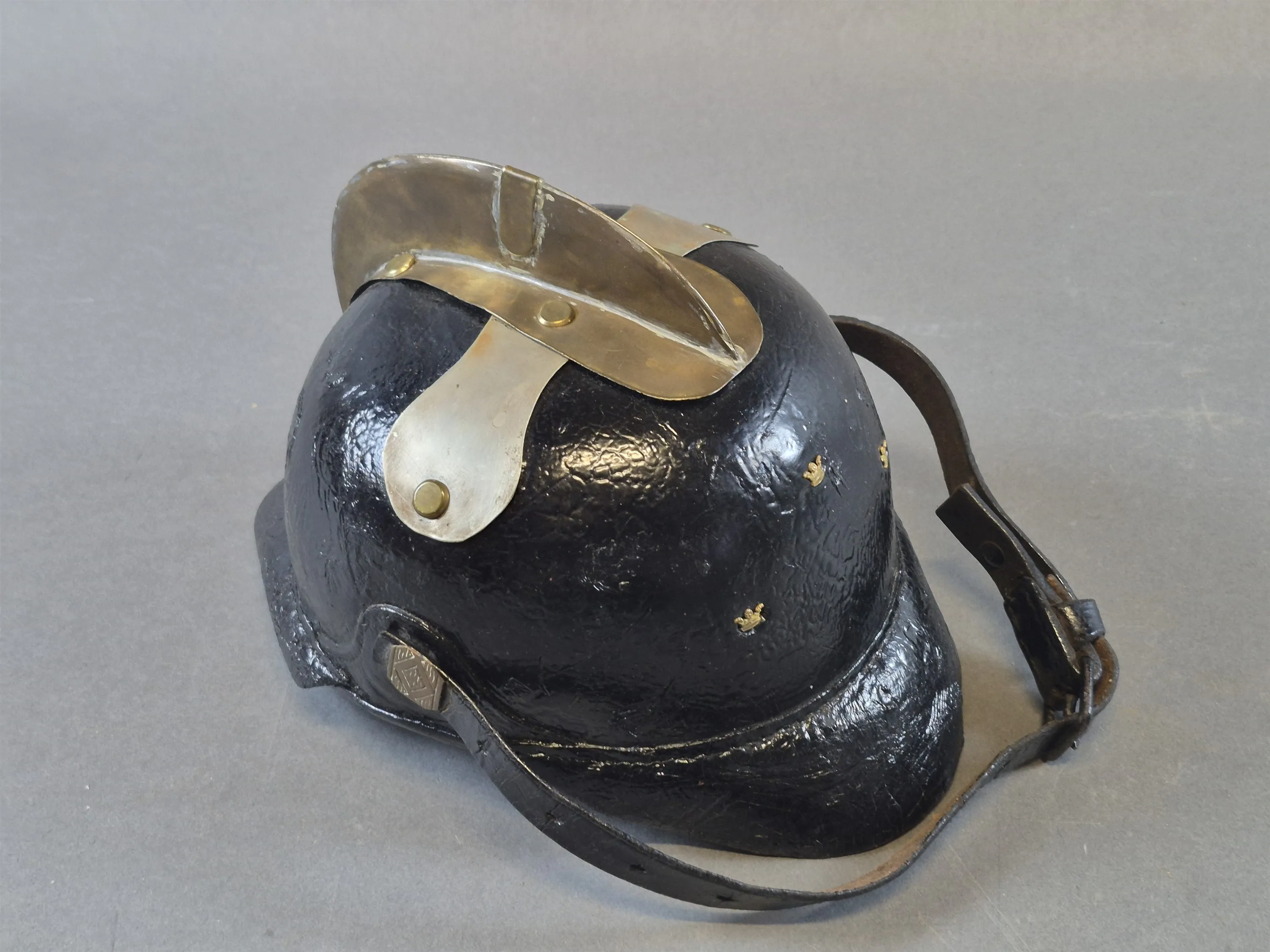 21038. Polishjälm, läder, höjd 18 cm