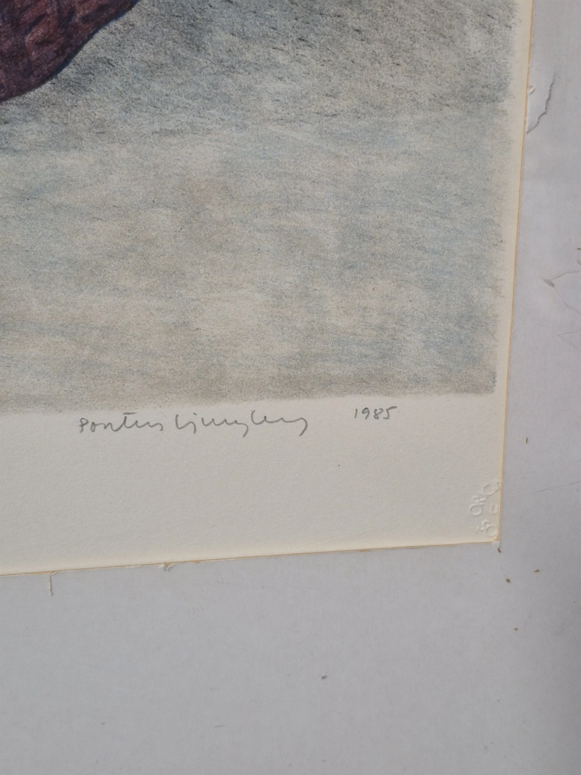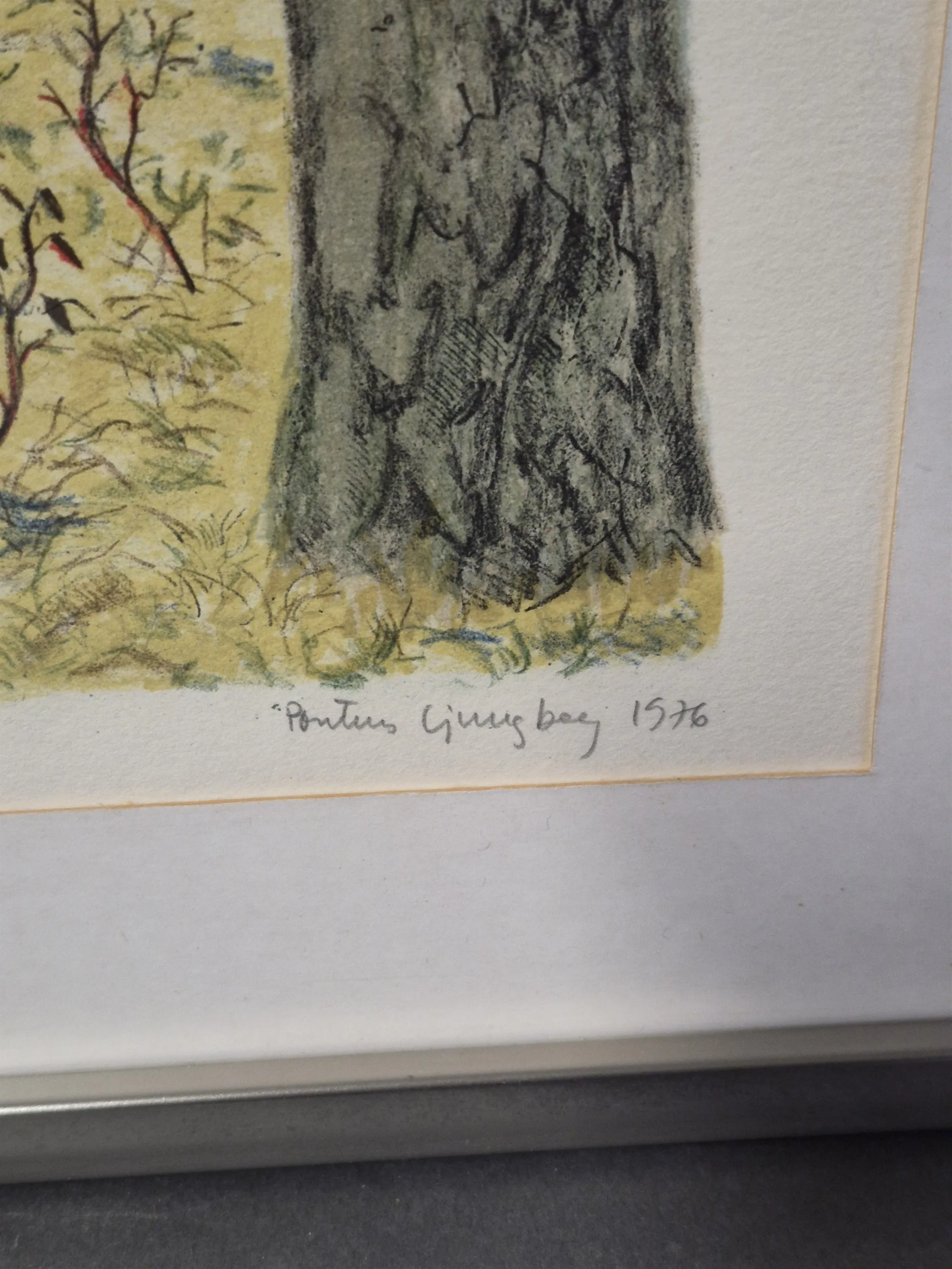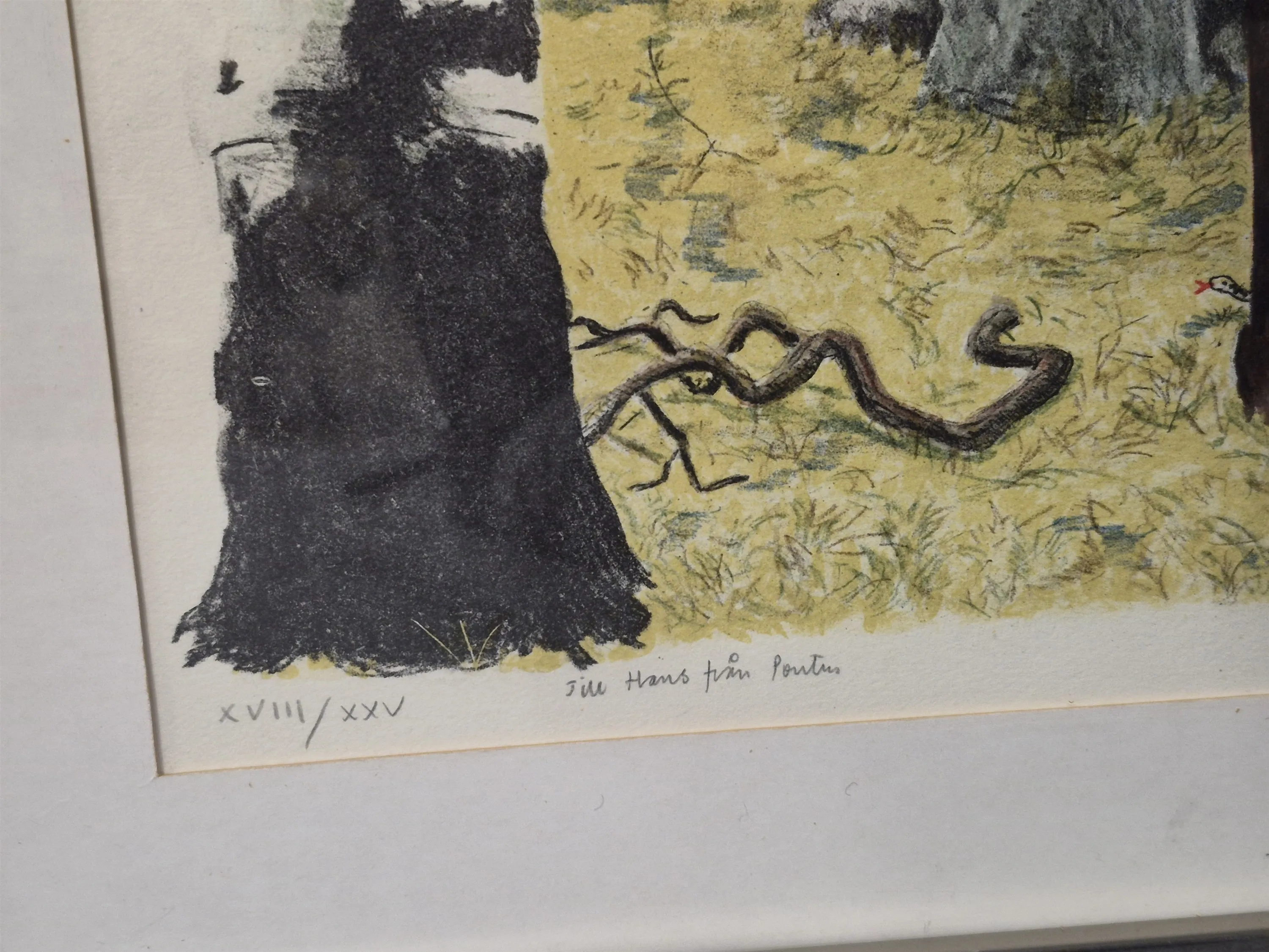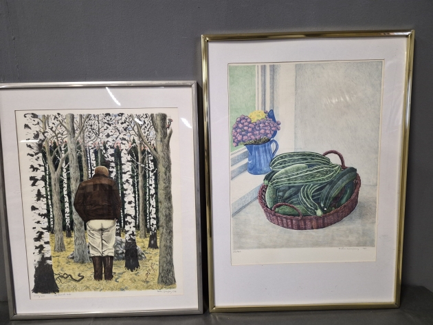 18683. Pontus Ljungberg litografier 2 st "Man i skog" och stilleben, största mått 71x51 cm