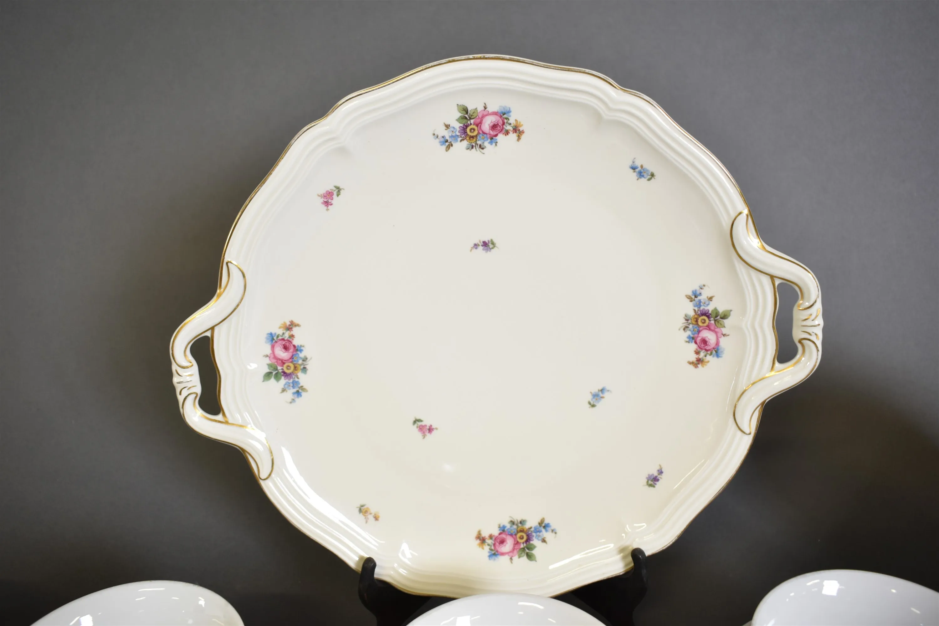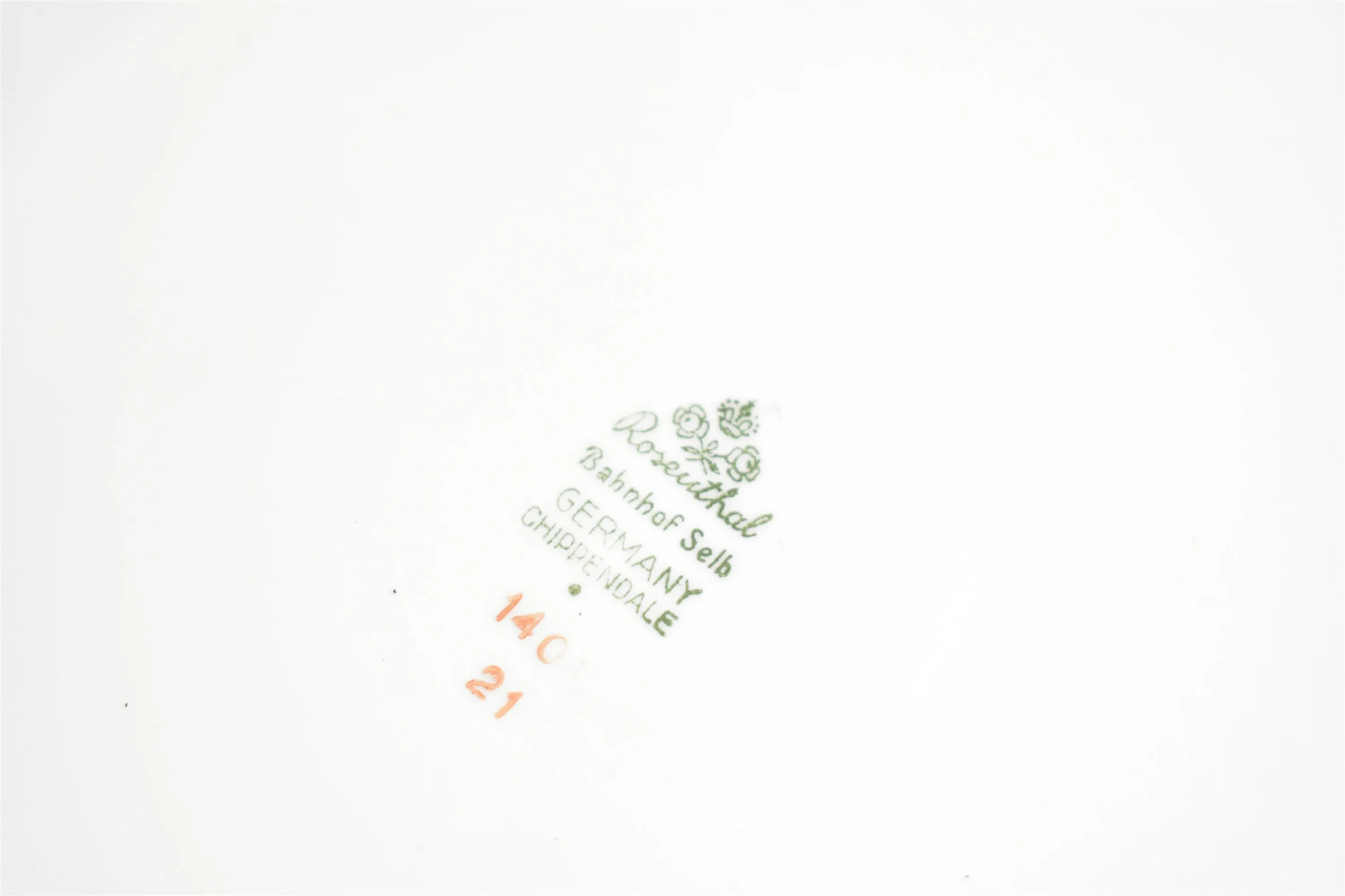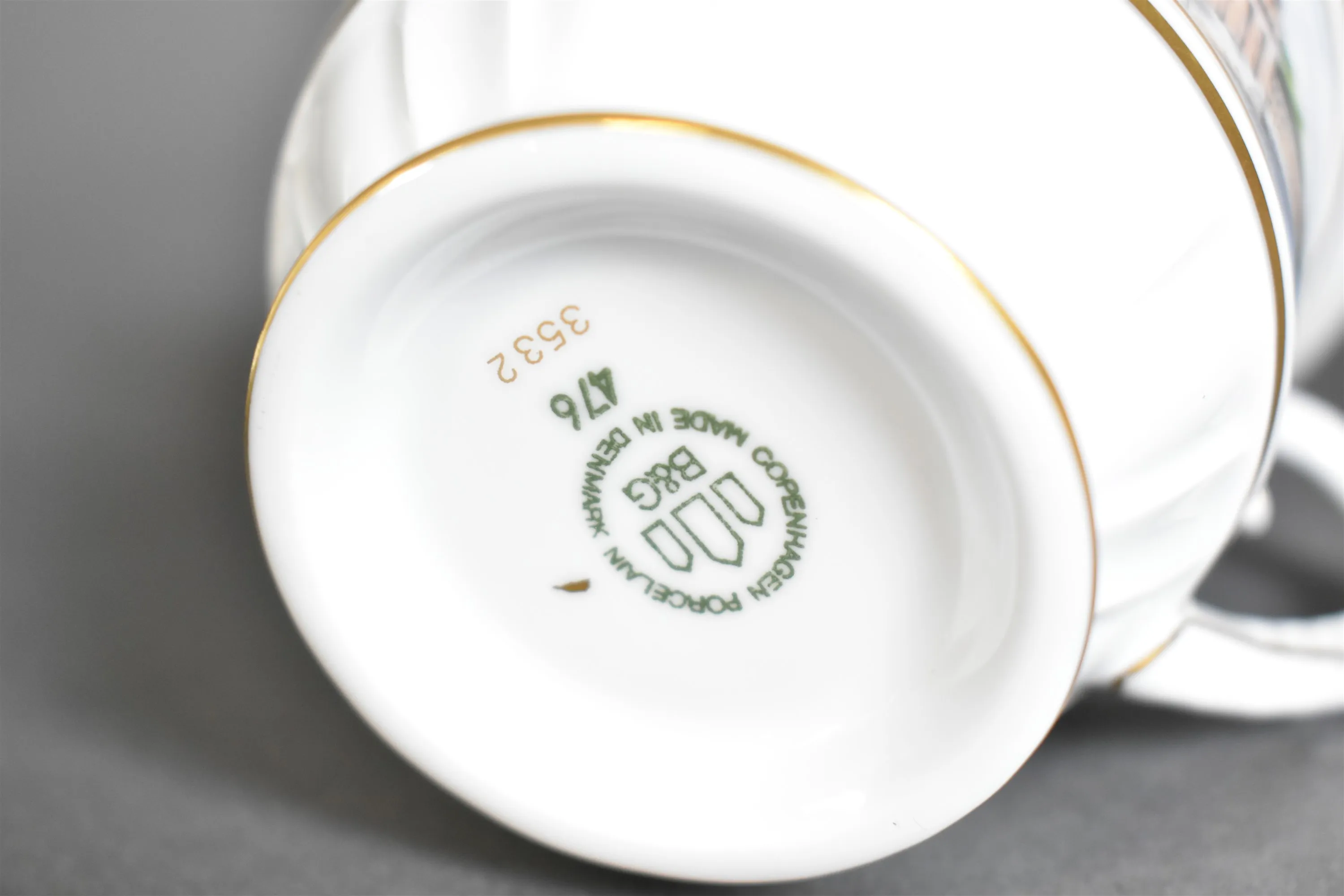 11388. Porslin bla buljongkoppar med fat 8 personer, fat Rosenthal och kopp med fat B&G 2 personer, längsta mått 33 cm