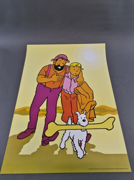 20895. Poster Tintin och Kapten Haddock 1970, mått 73,5x53,5 cm