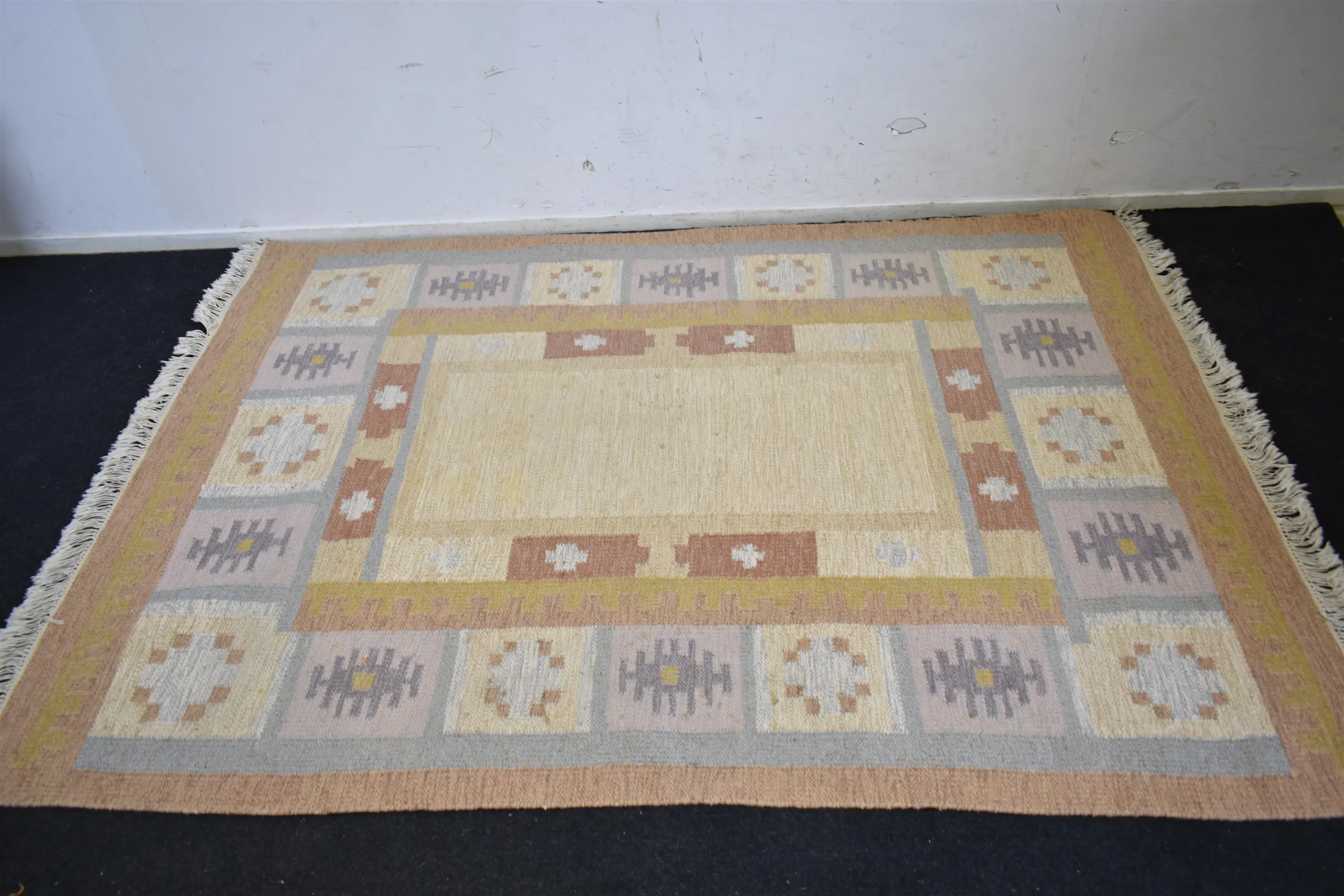 7279. Röllakanmatta, mått 250 x 175 cm, fläckar finns kantslitage