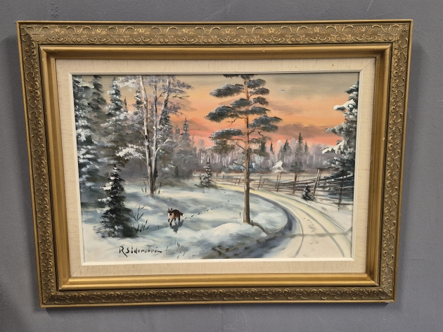 20404. R.Söderström, olja på duk, "Räv i vinter", mått 86 x 66 cm