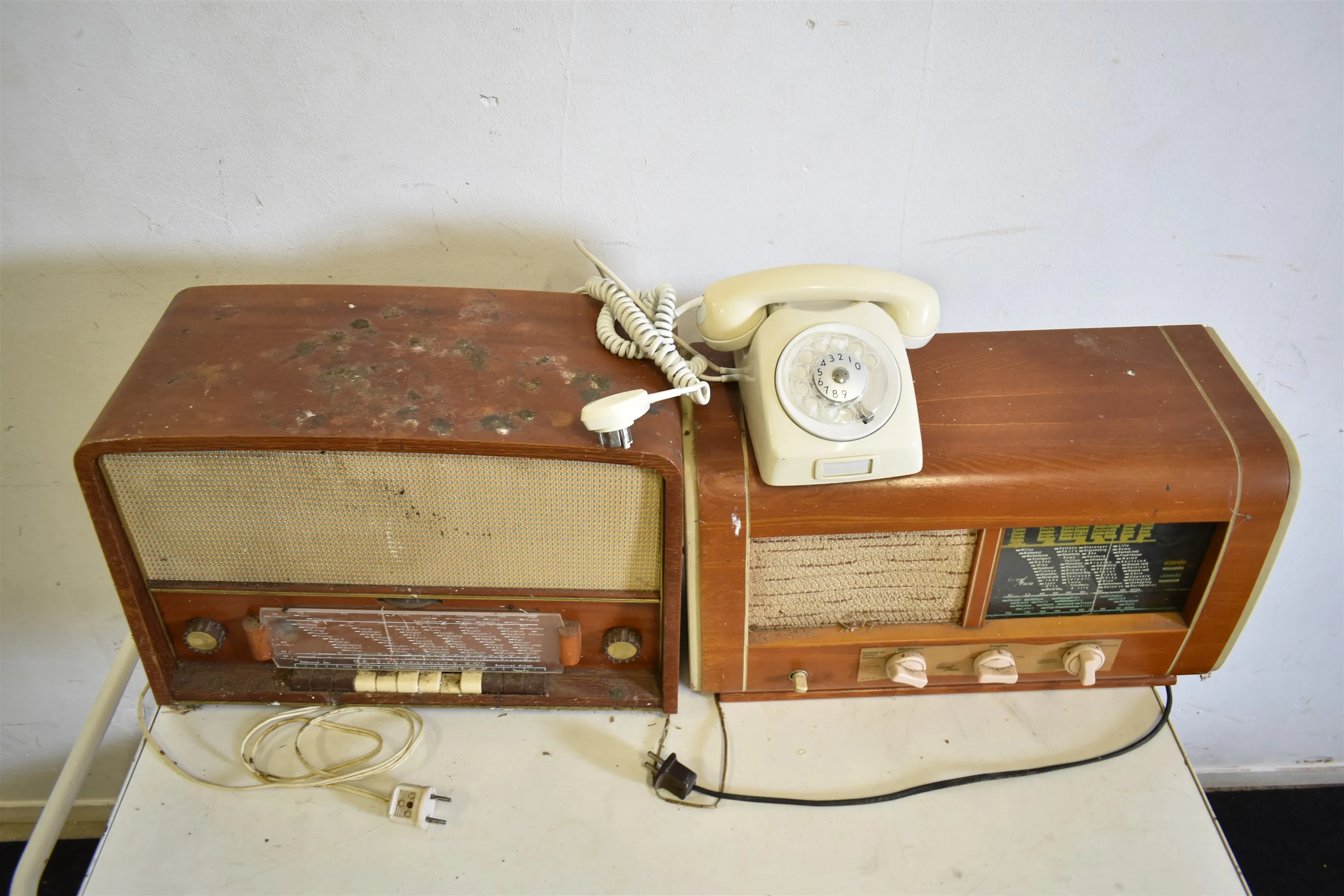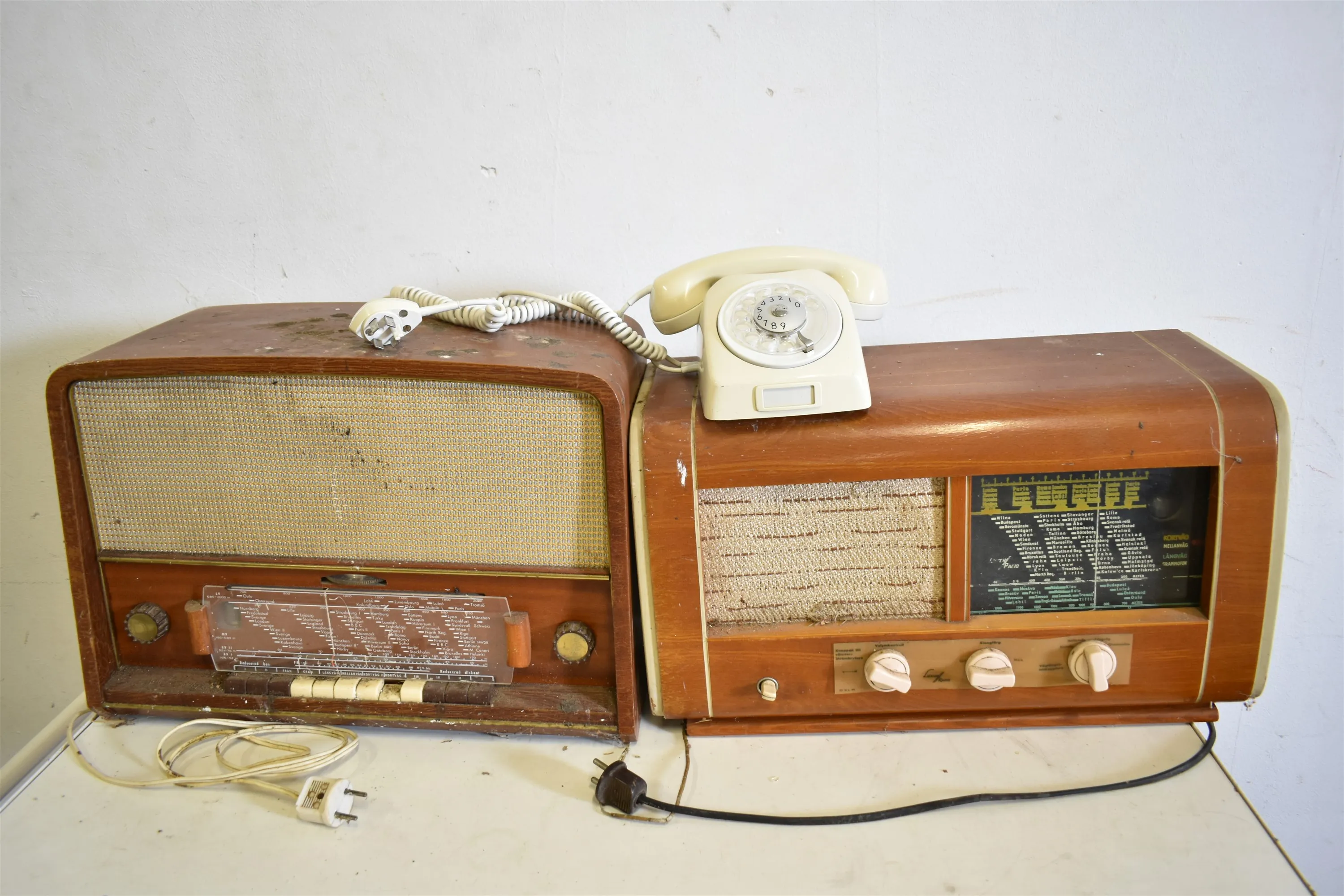 15678. Radioapparater, 2 st & telefon, behöver ses över längsta 50 cm