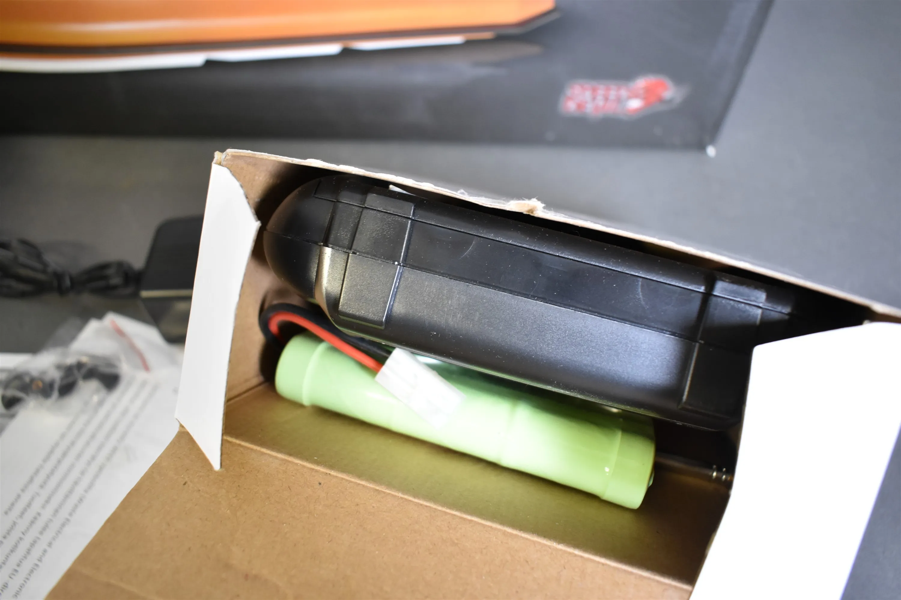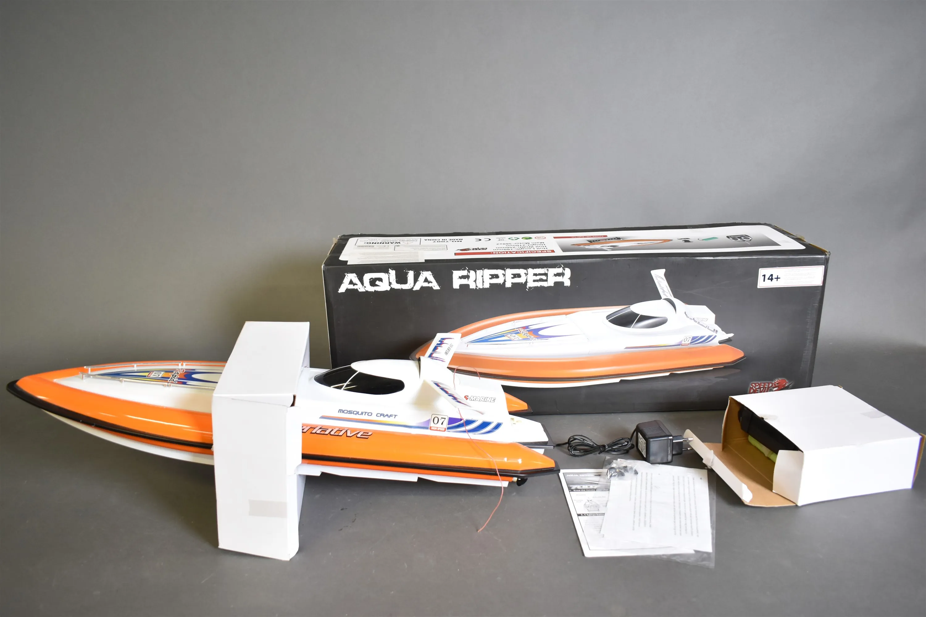 13431. Radiostyrd båt Aqua Ripper med låda, orange, längd på båt 78 cm