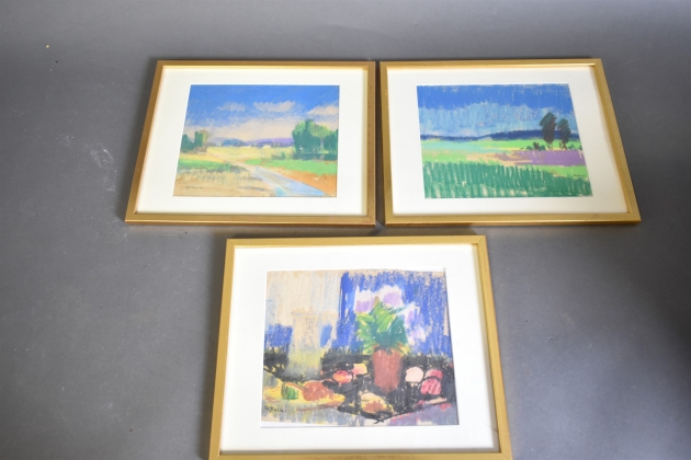 13939. Ragnar Falk pasteller 3 st, Landskap, mått 30 x 37 cm