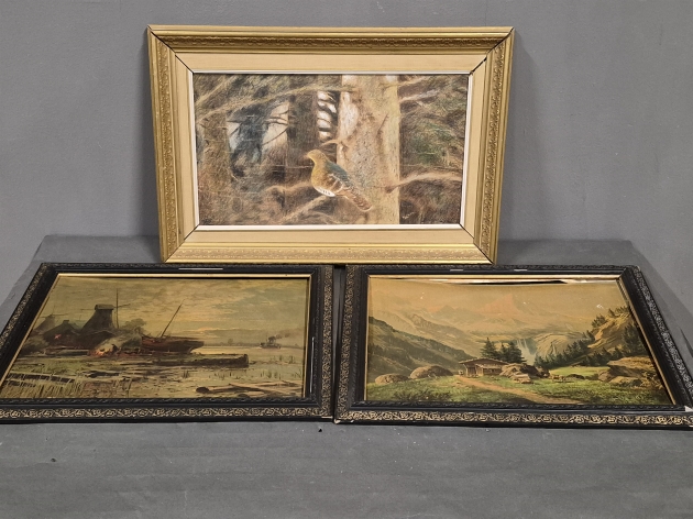 18597. Reproduktioner 2 st & teckning Bruno Liljefors kopia, största mått