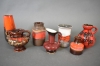 8710. Retrovaser/kannor 7 st, keramik, högsta höjd 20 cm