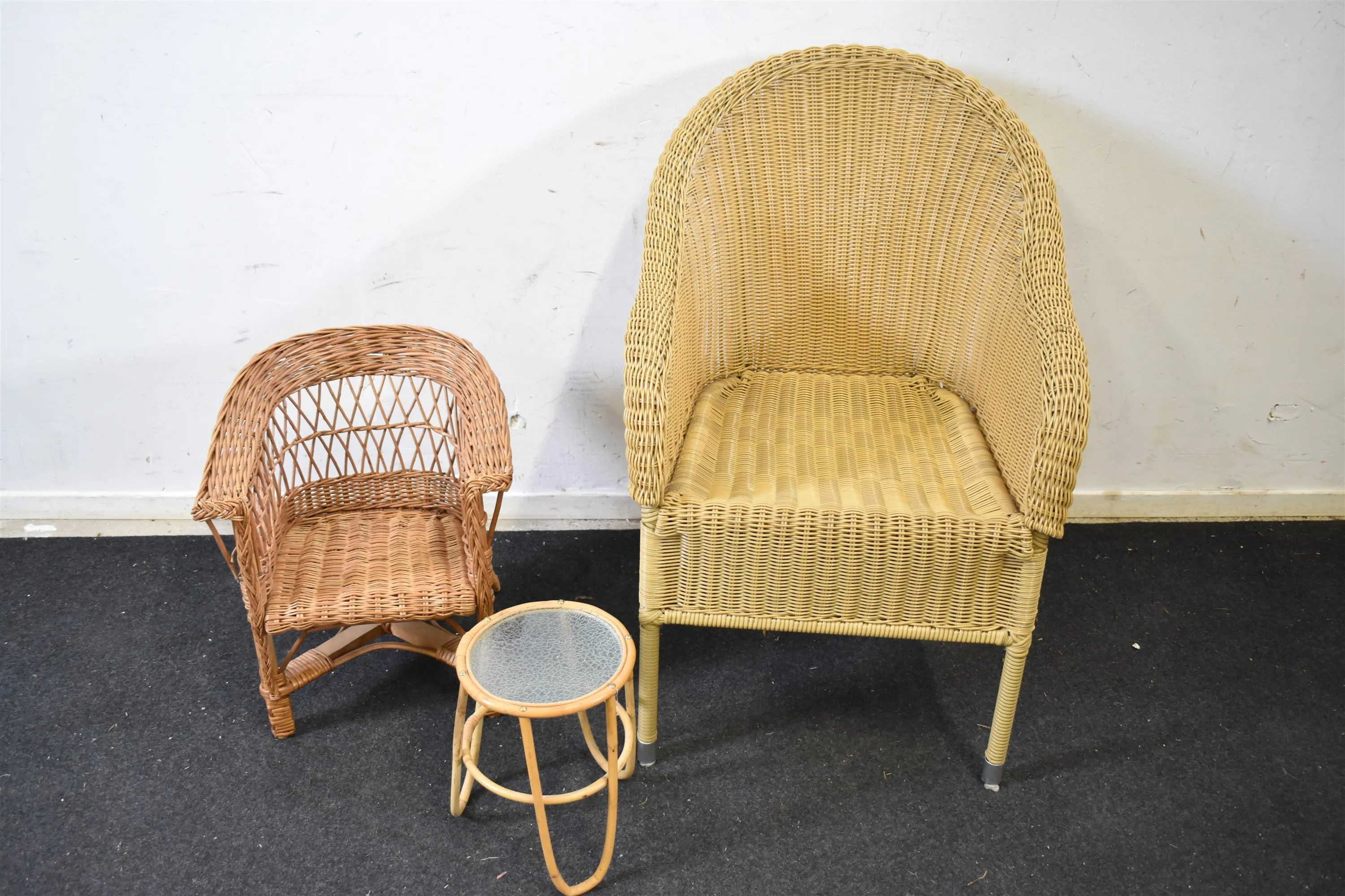 14285. Rotting 3 delar; stol, barnstol och piedestal, högsta höjd 91 cm
