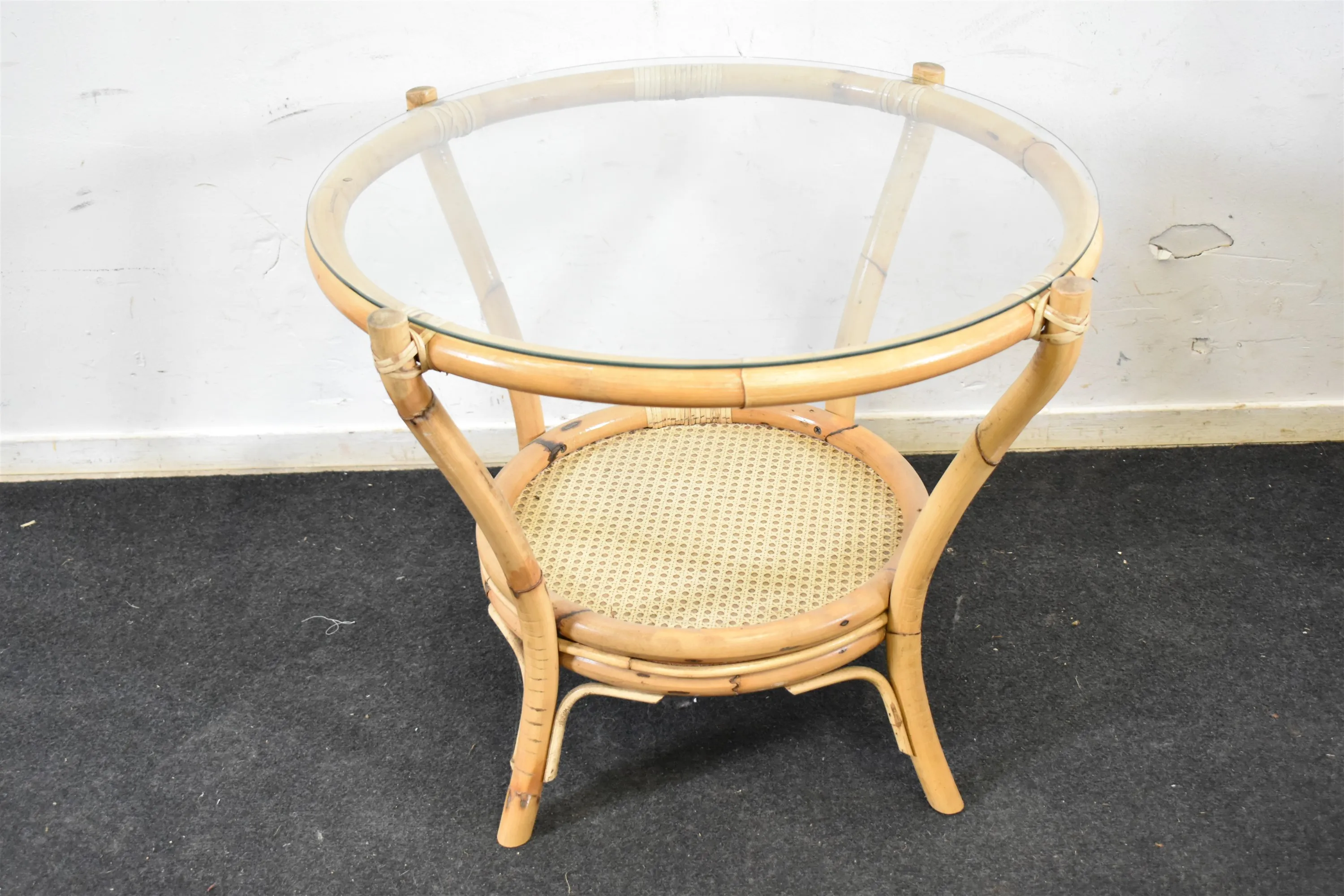 12664. Rottingbord med glasskiva, höjd 58 cm, diameter 78 cm