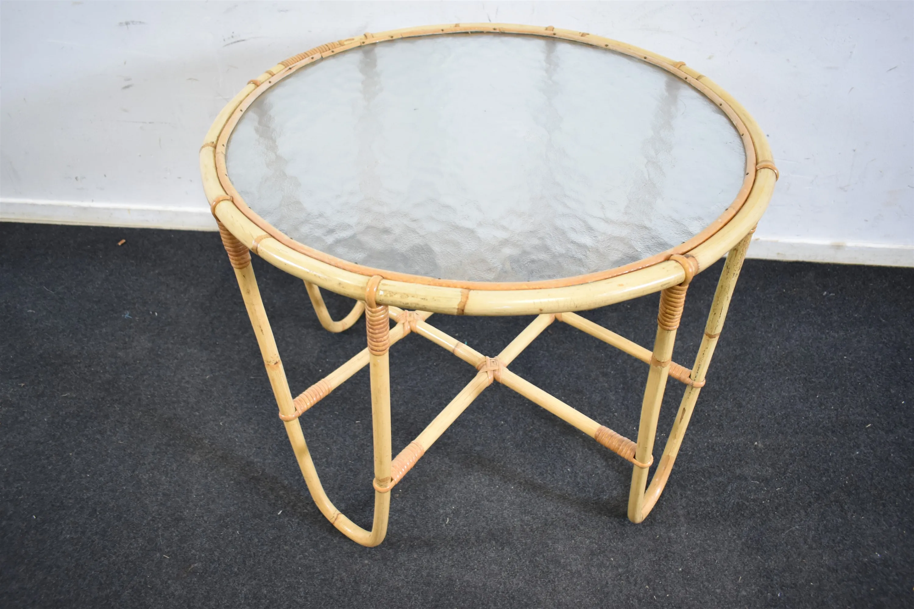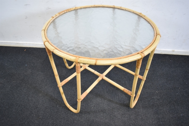 14812. Rottingbord med råglasskiva, höjd 59 cm, diameter 75 cm