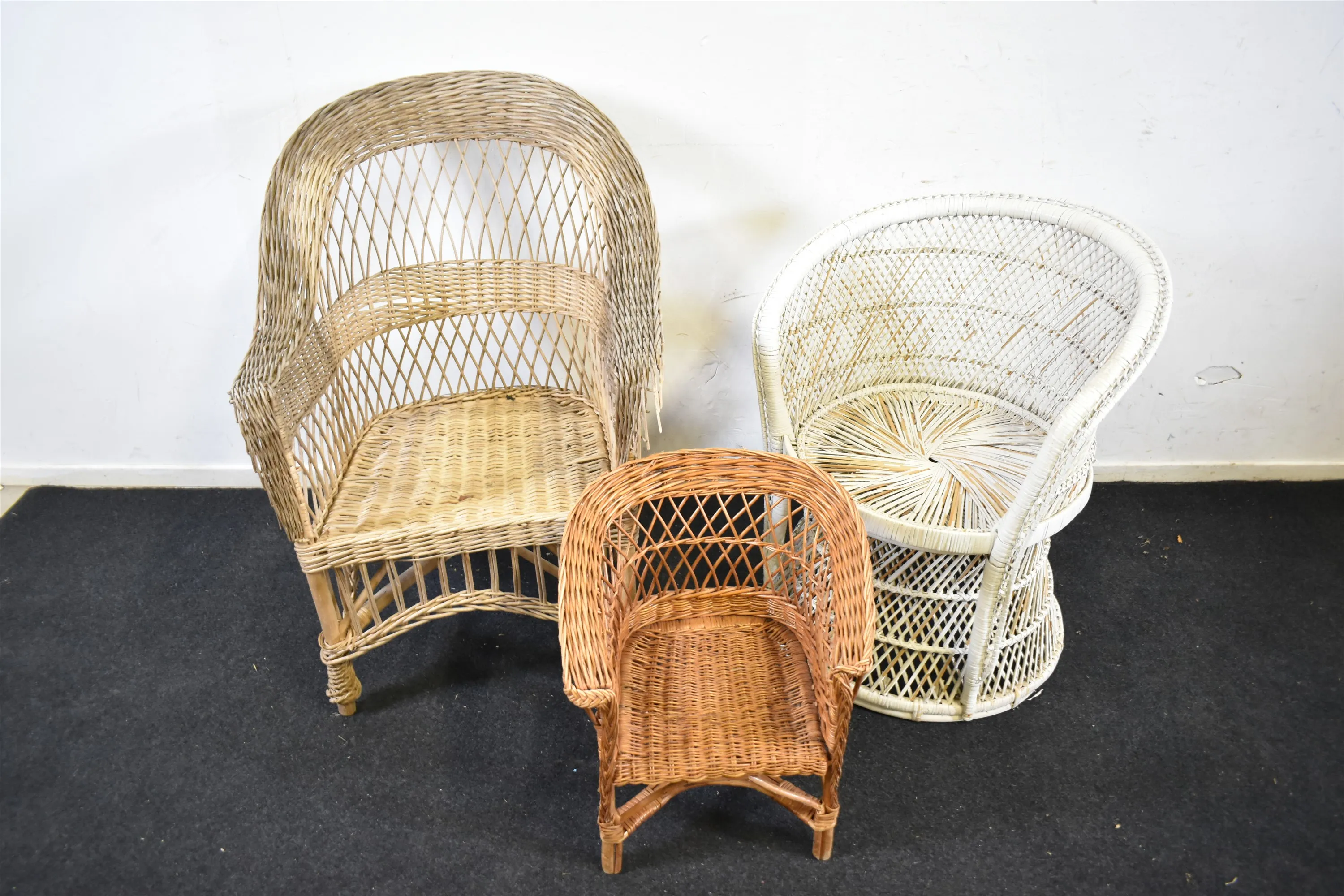 7248. Rottingfåtöljer olika 3 st, högsta 98 cm, defekter finns
