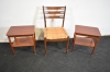 2257. Sängbord 1 par & stol med flätad sits, bl.a Hedbergs i Vinslöv & stol med flätad sits, högsta 85 cm