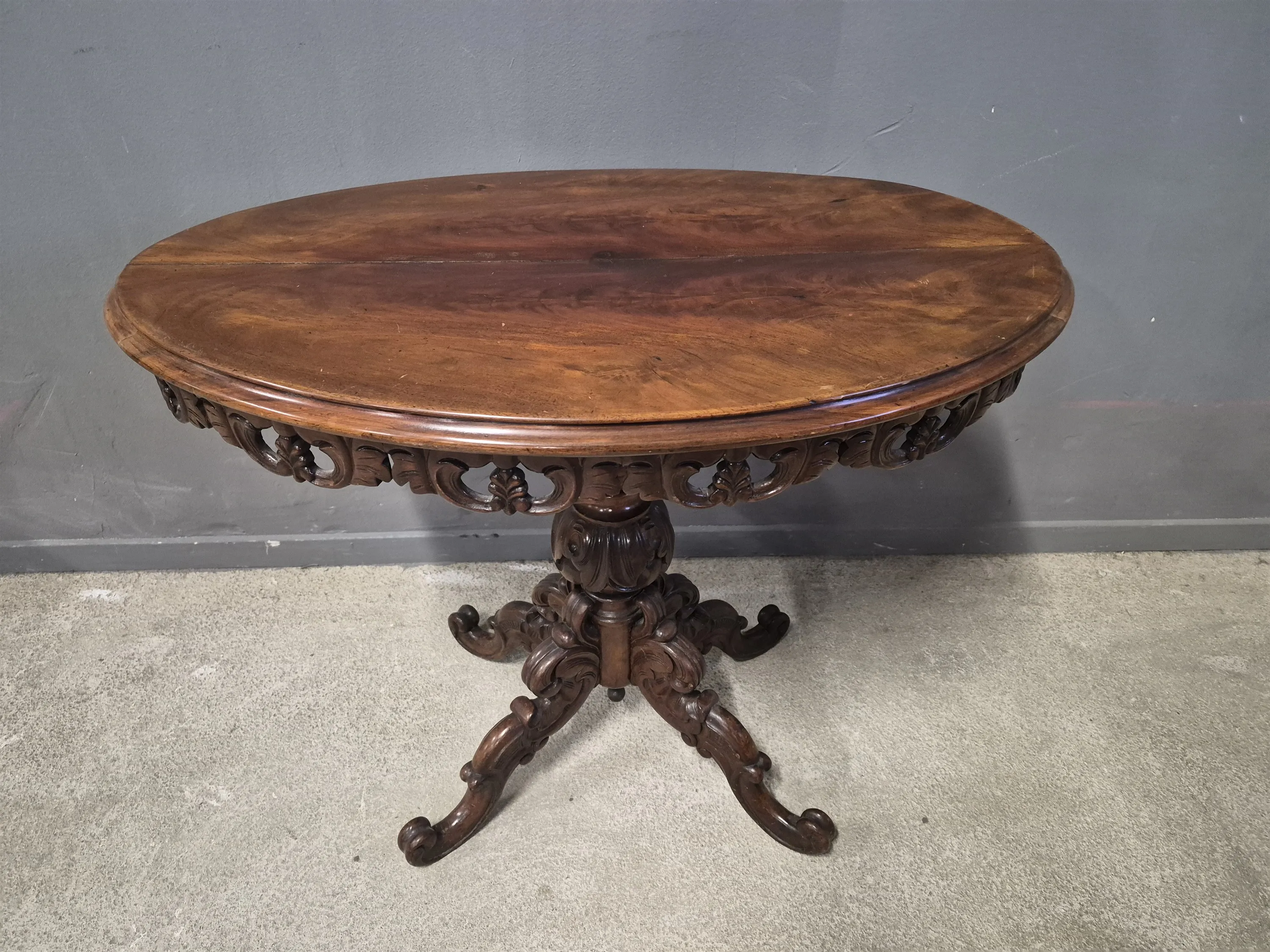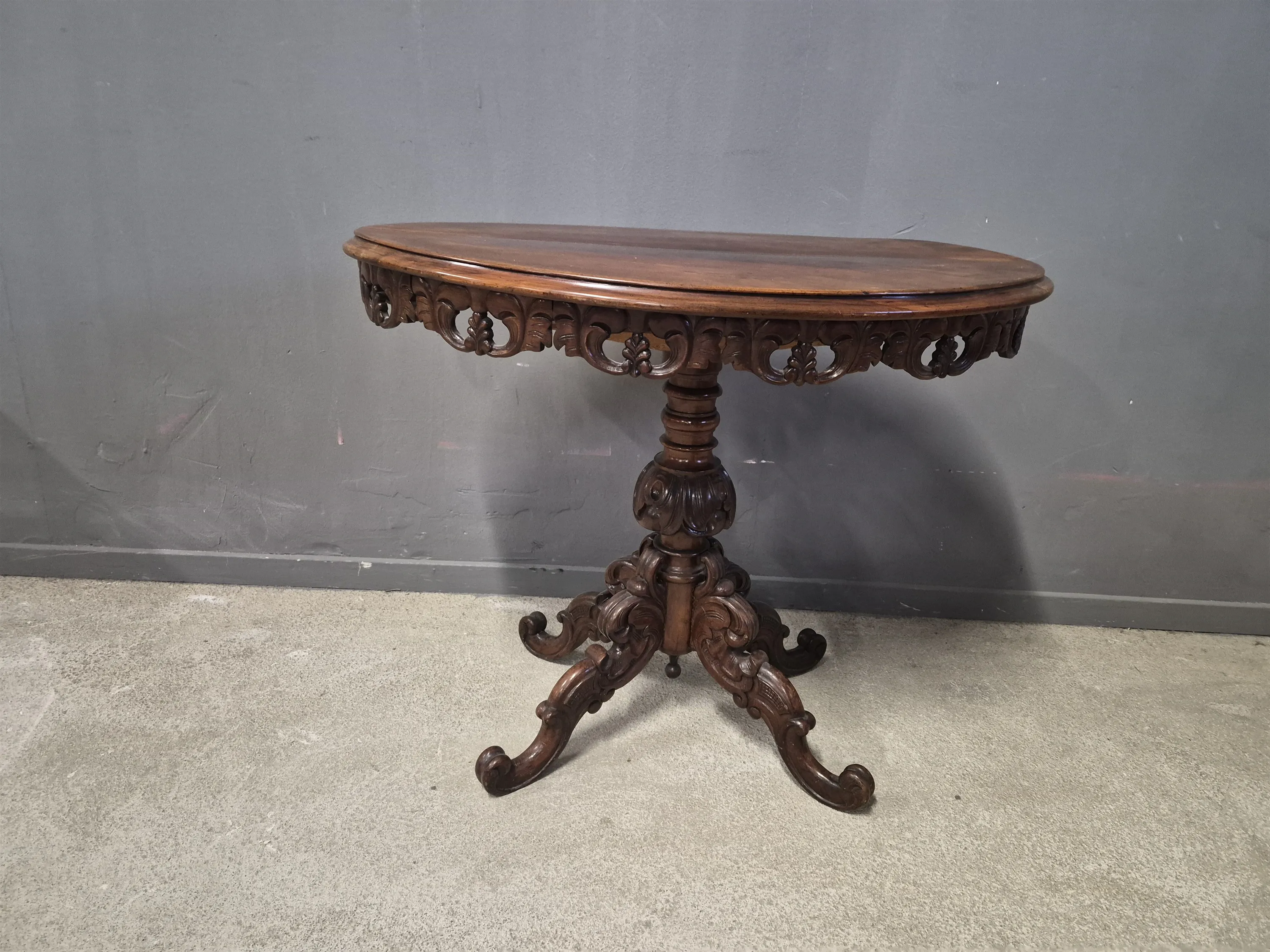 18912. Salongsbord, 1800-tal ornamenterad sarg & fot, höjd 66 cm, längd 80 cm, bredd 50 cm