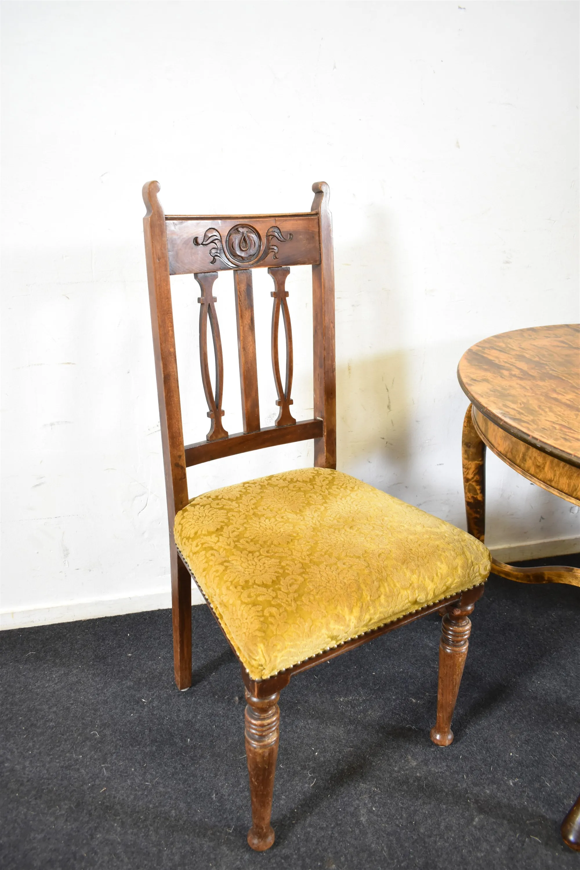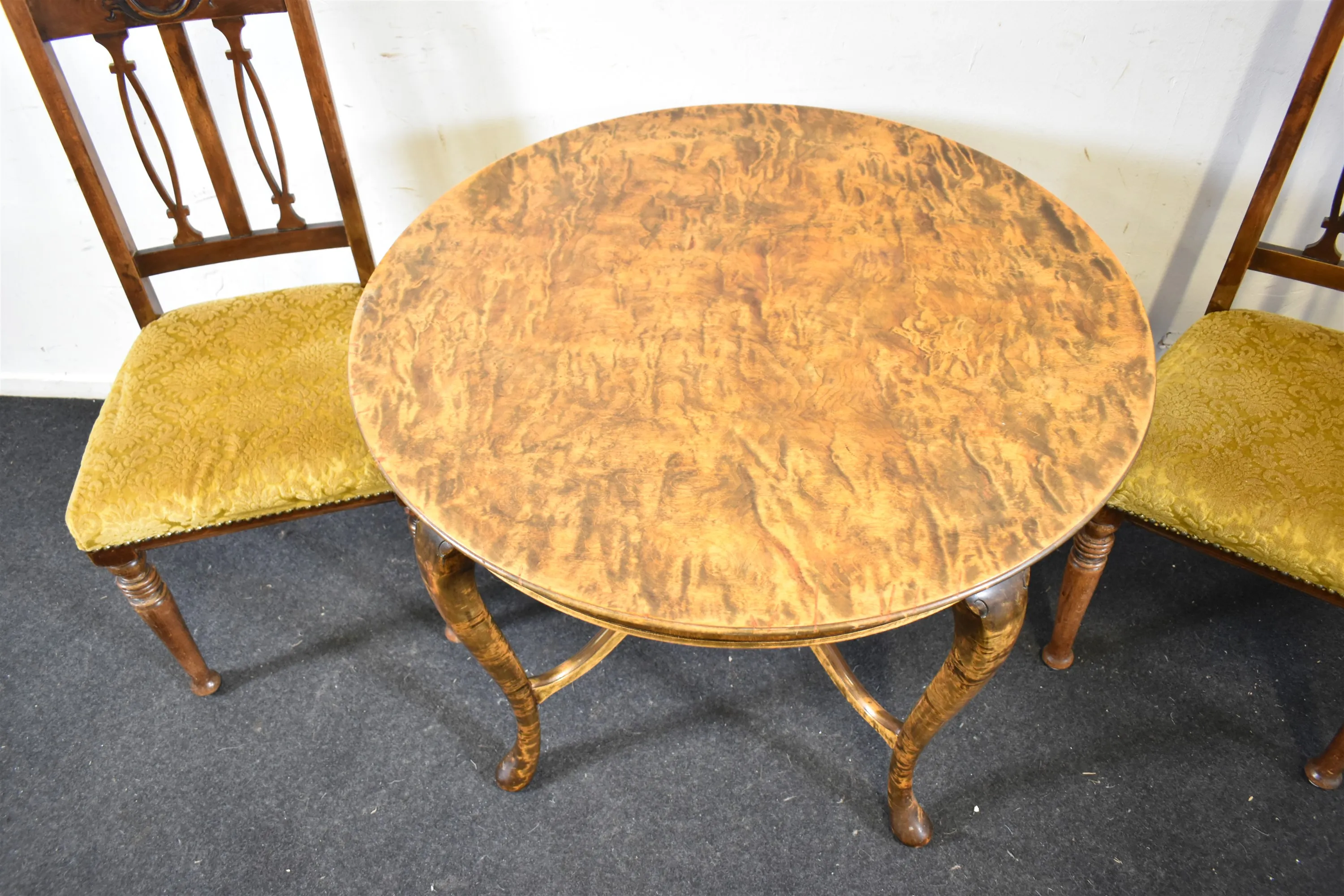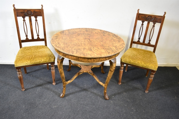 16466. Salongsbord björk & stolar 1 par Jugend, höjd 103 cm bord 70 cm, diameter 88 cm