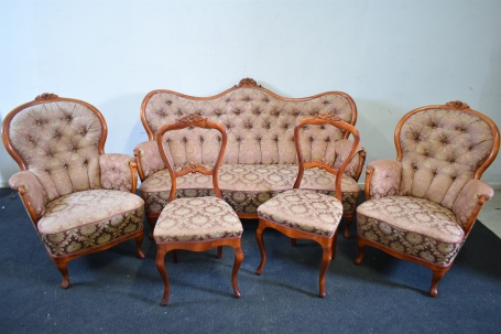 3804. Salongsgrupp 5 del S-M Wincrante Skövde, Rokokostil, höjd soffa 99 cm, längd 166 cm, höjd fåtölj 96 cm
