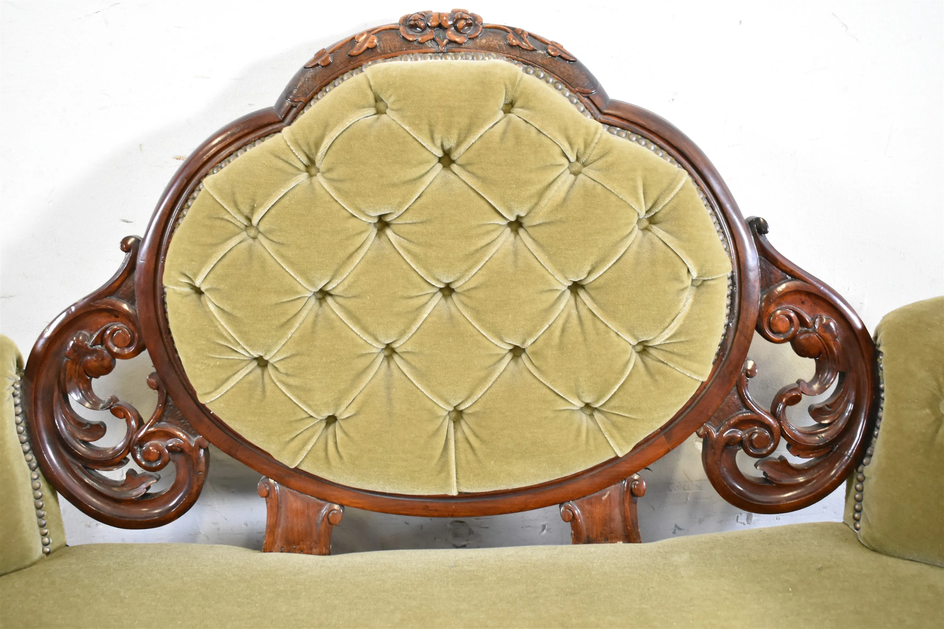15445. Salongssoffa med medaljong rygg, England, slutet 1800-tal