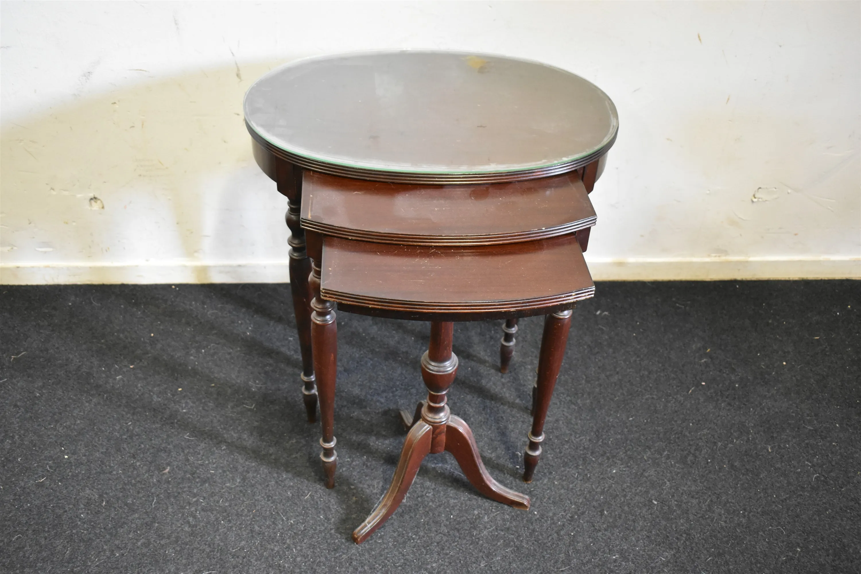 16388. Satsbord 3 del, Engelsk stil mahogny, högsta 60 cm, största bredd 59 cm