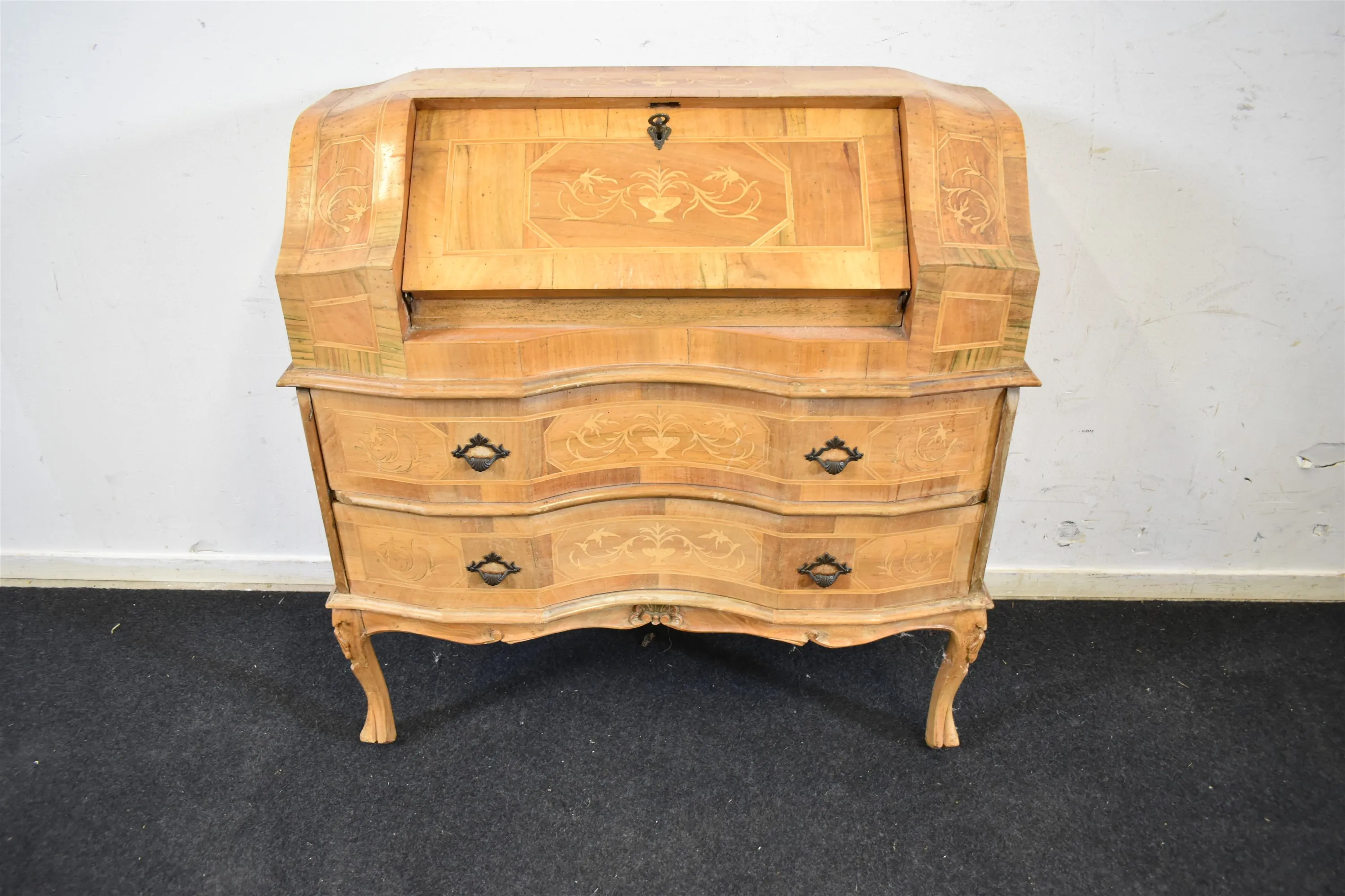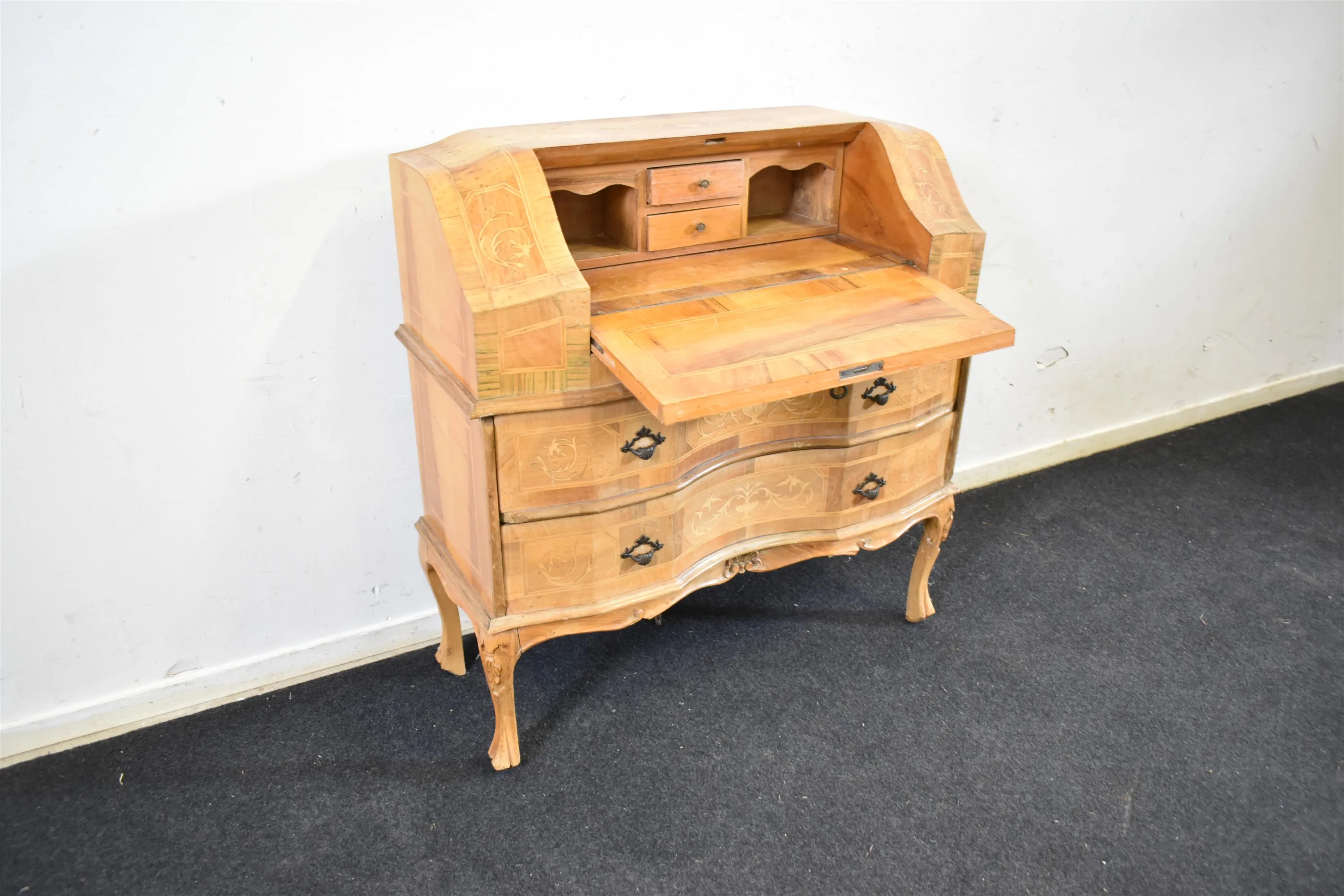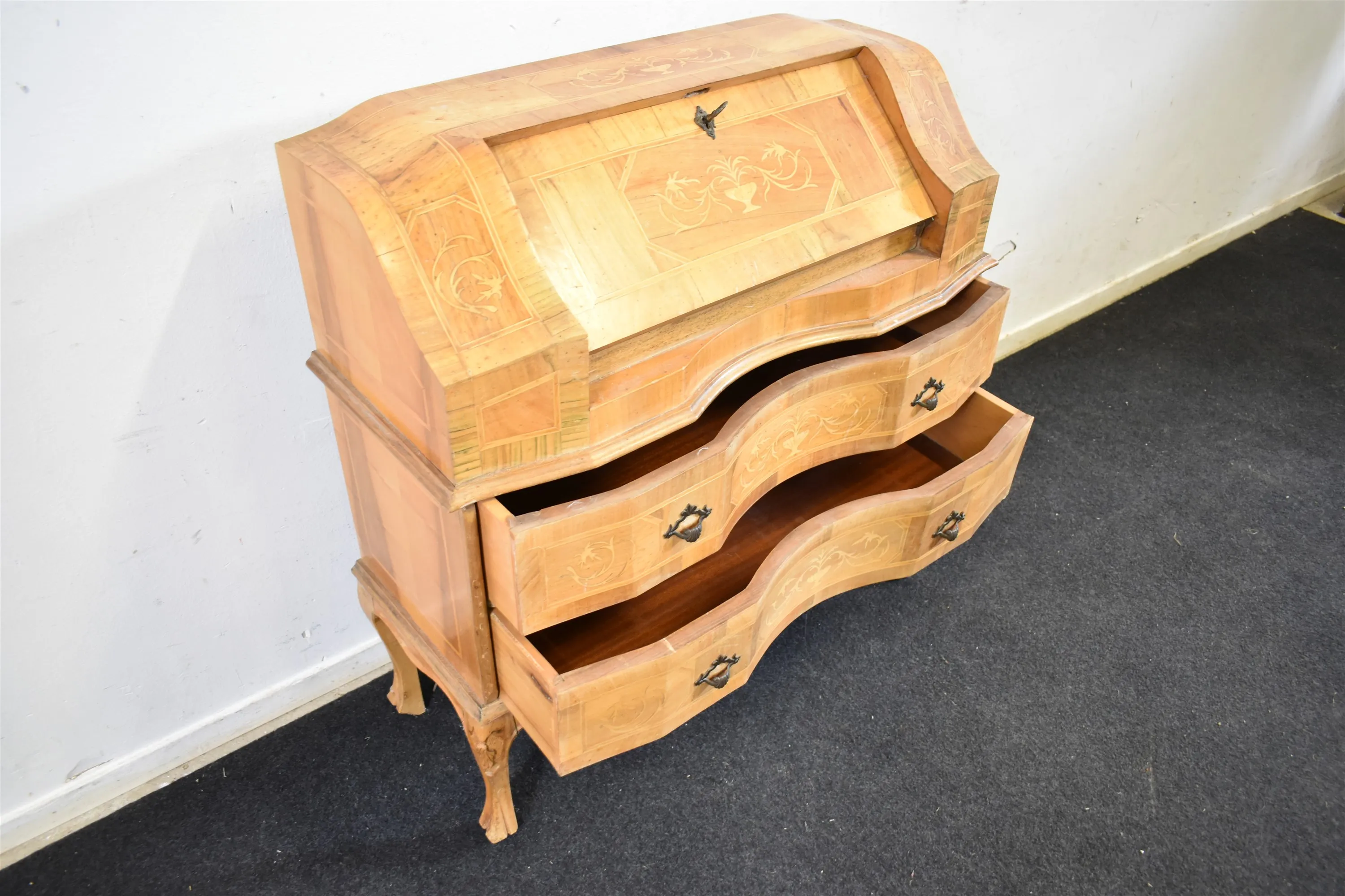 12723. Sekretär, barockstil, intarsia höjd 89 cm, bredd 87 cm djup 37 cm