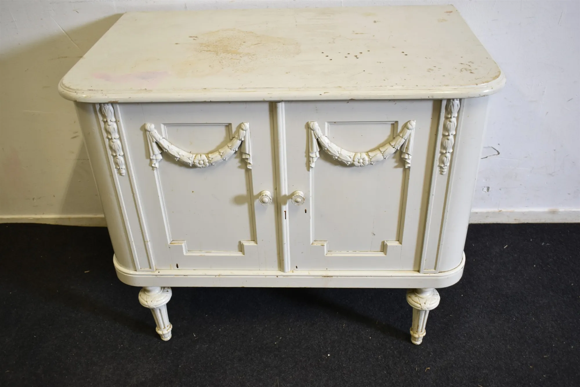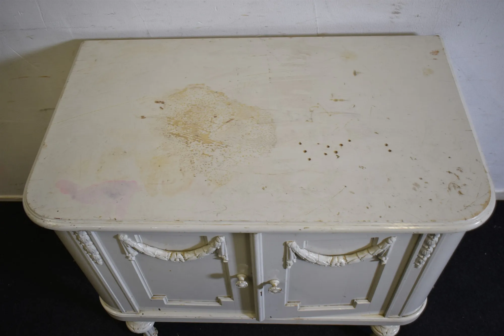 17759. Serveringsskåp, vit lack, höjd 78 cm, bredd 95 cm, djup, 57 cm, hack & skav finns