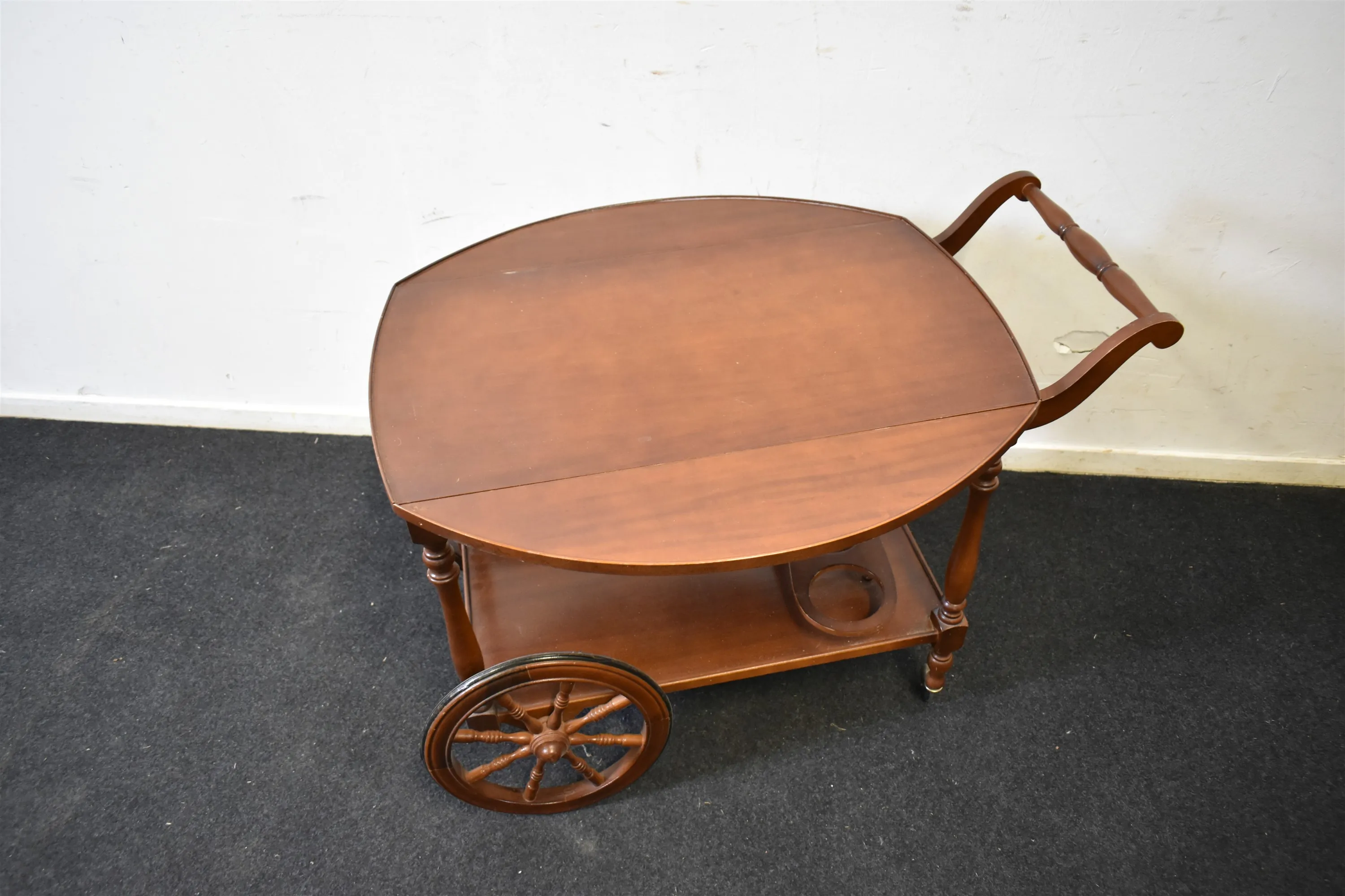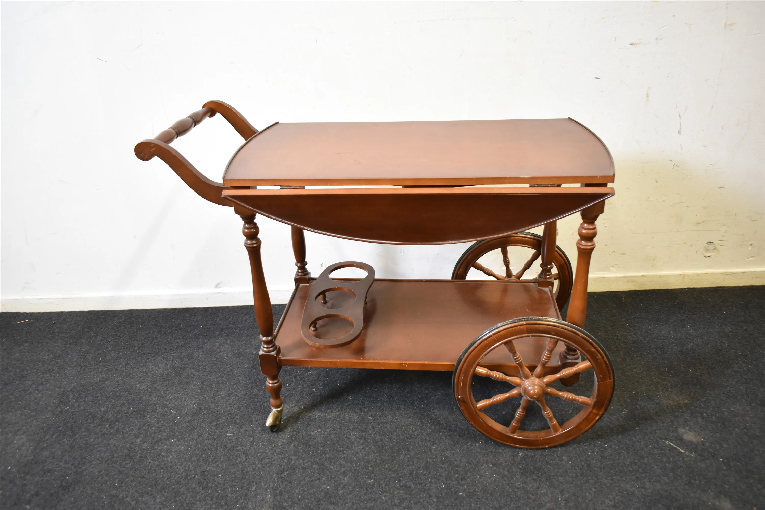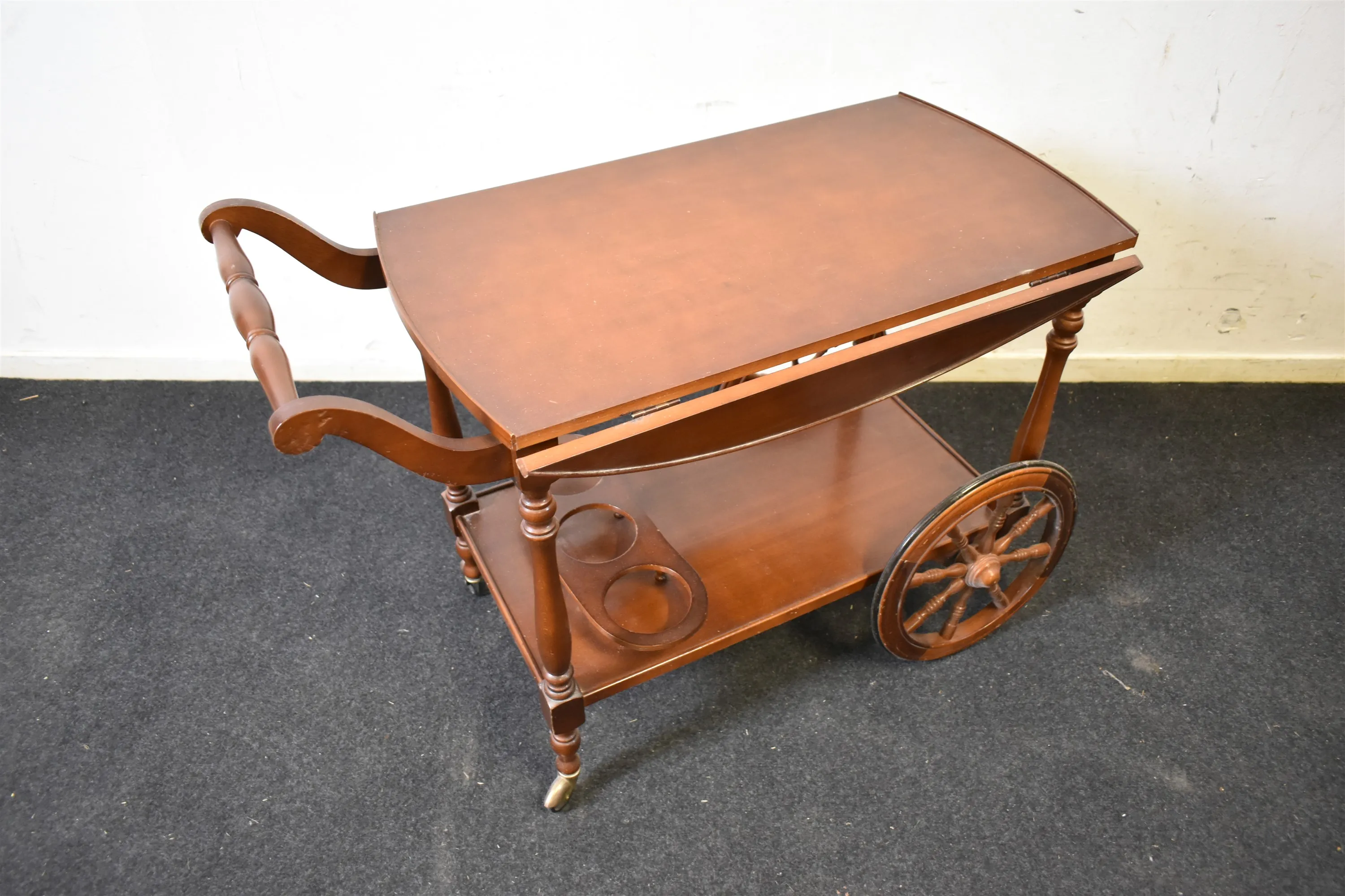 10398. Serveringsvagn, brunbets, höjd 68 cm, bredd 44 cm, längd 99 cm