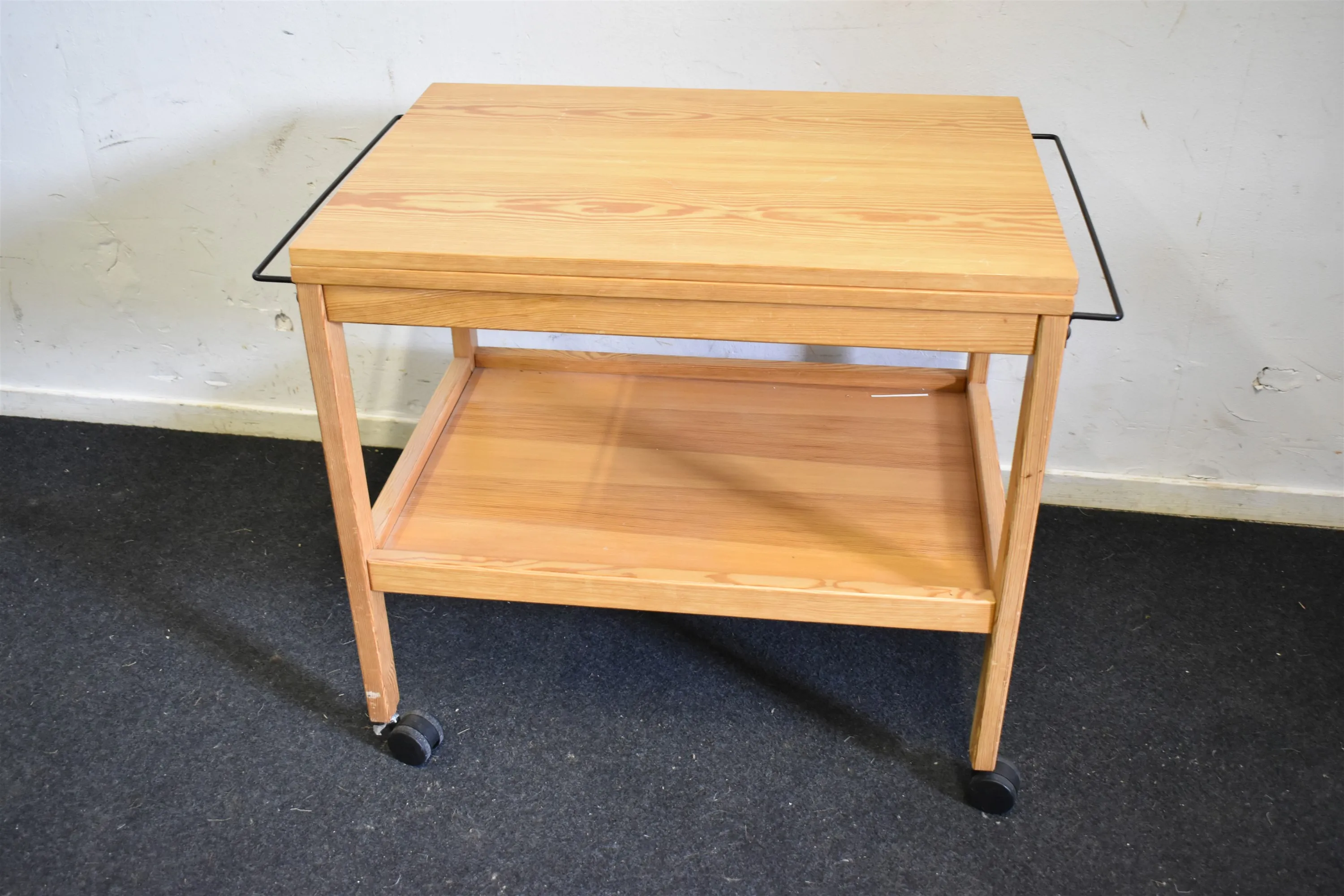 16406. Serveringsvagn, furu med fällbar skiva, höjd 64 cm, bredd 50 cm, längd 70 cm