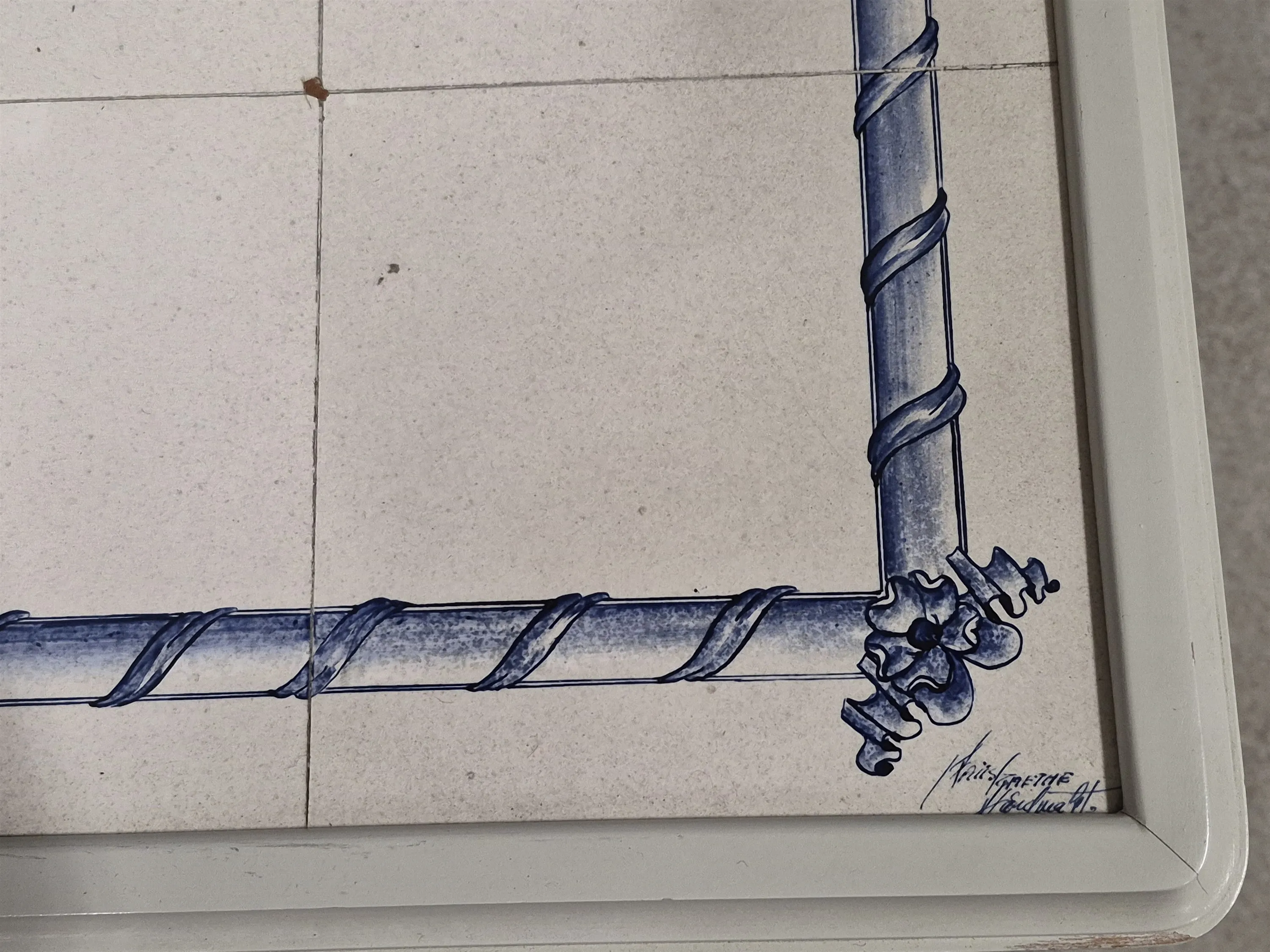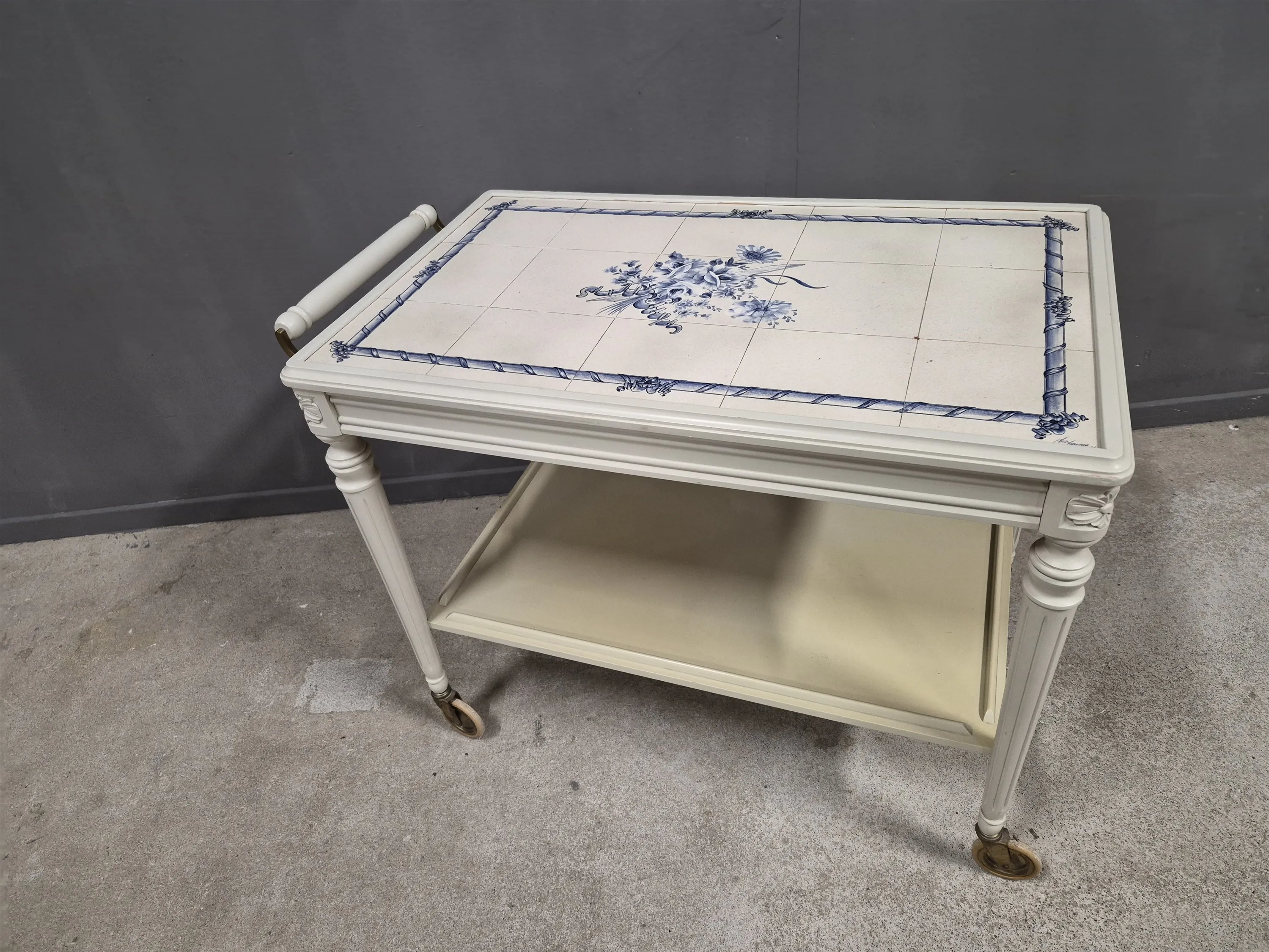 17973. Serveringsvagn Gustaviansk stil, kakelskivor, Handgemalt Klaus Grethe