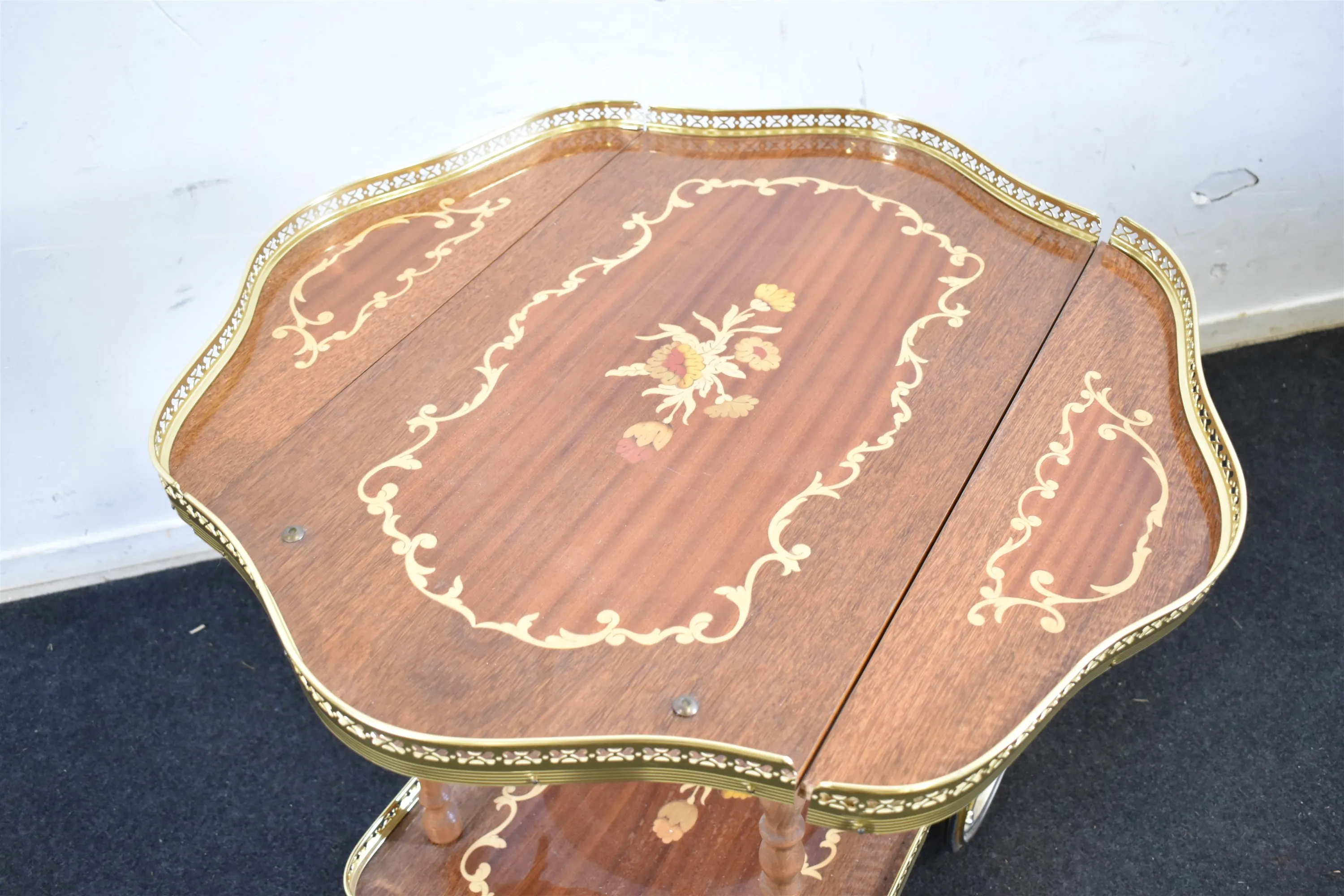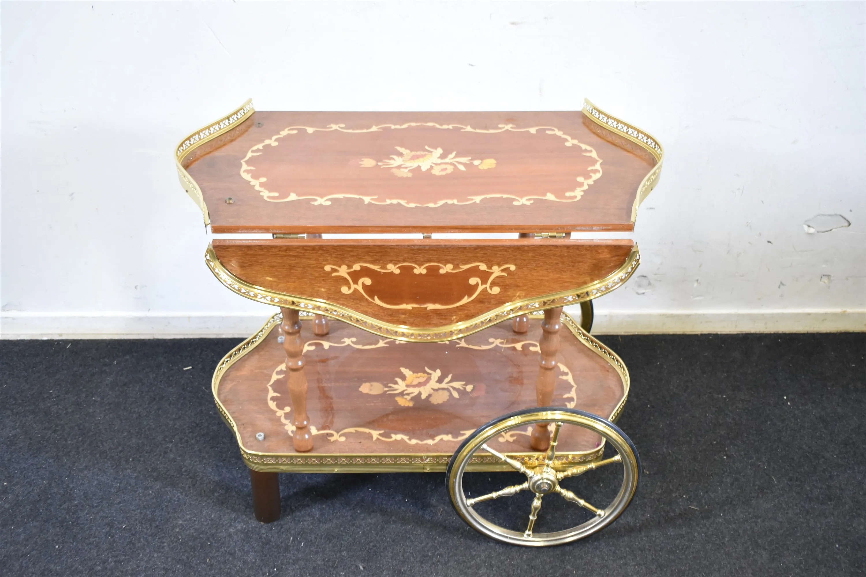 12649. Serveringsvagn med intarsia, med klaffar, höjd 65 cm
