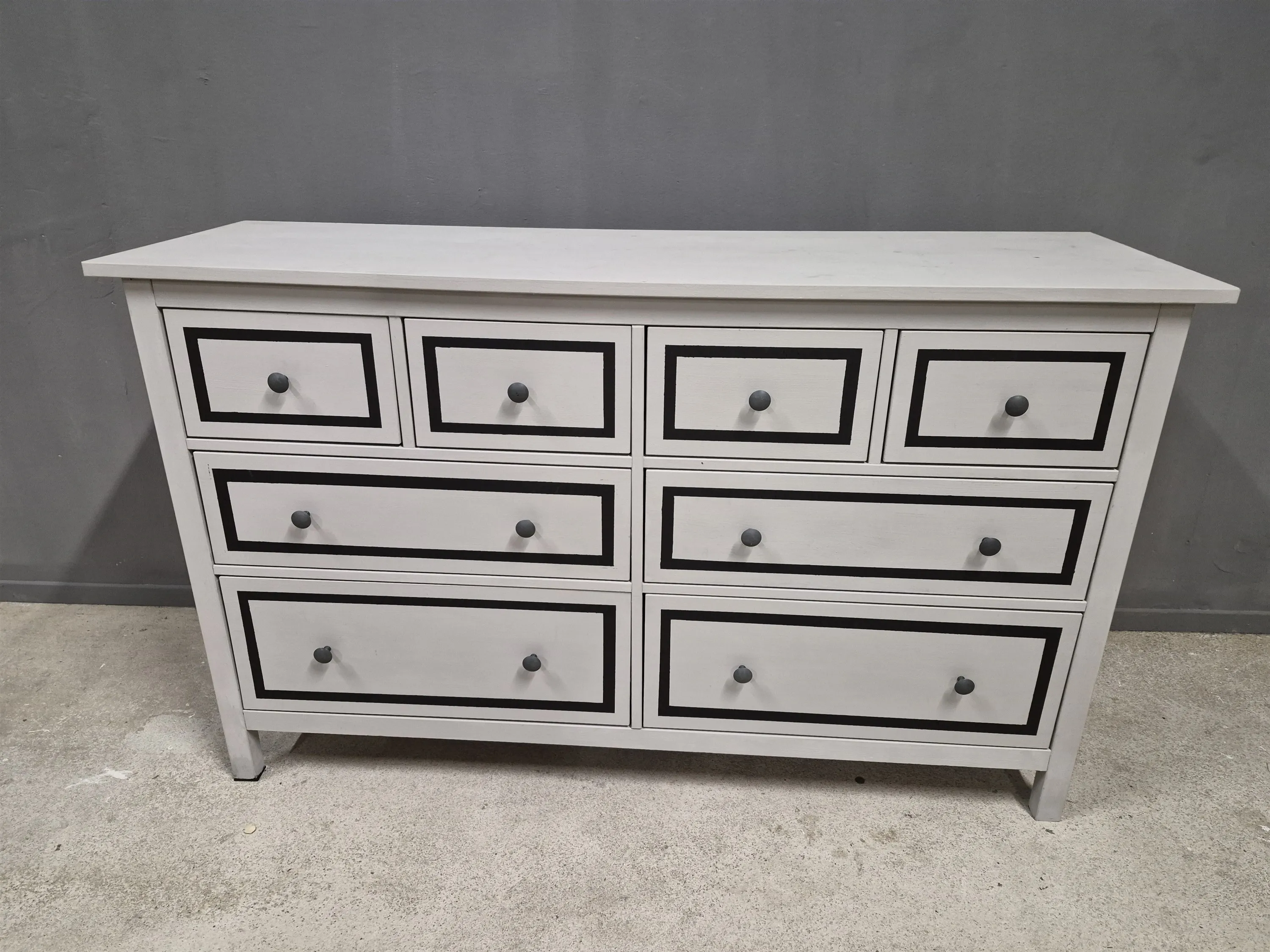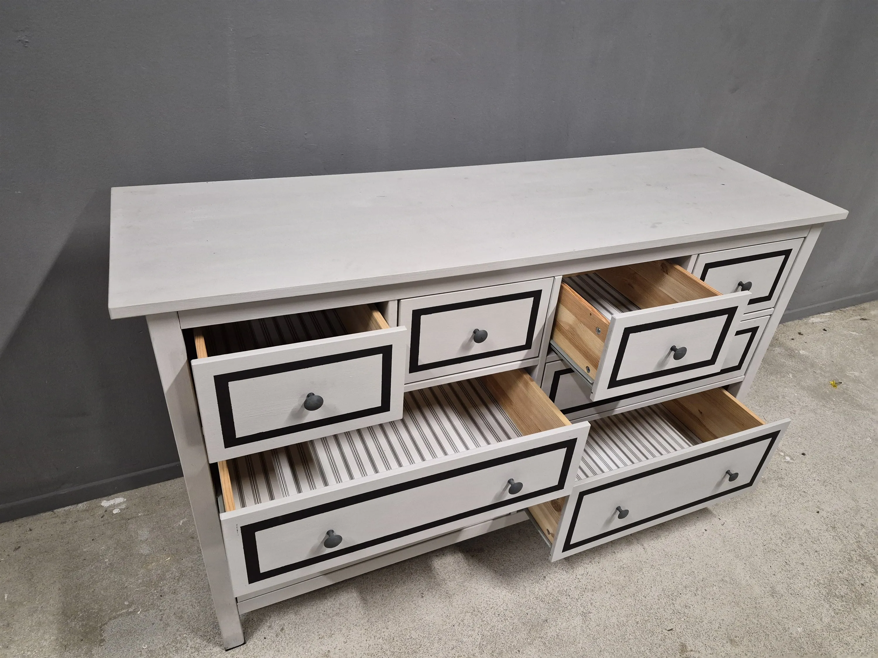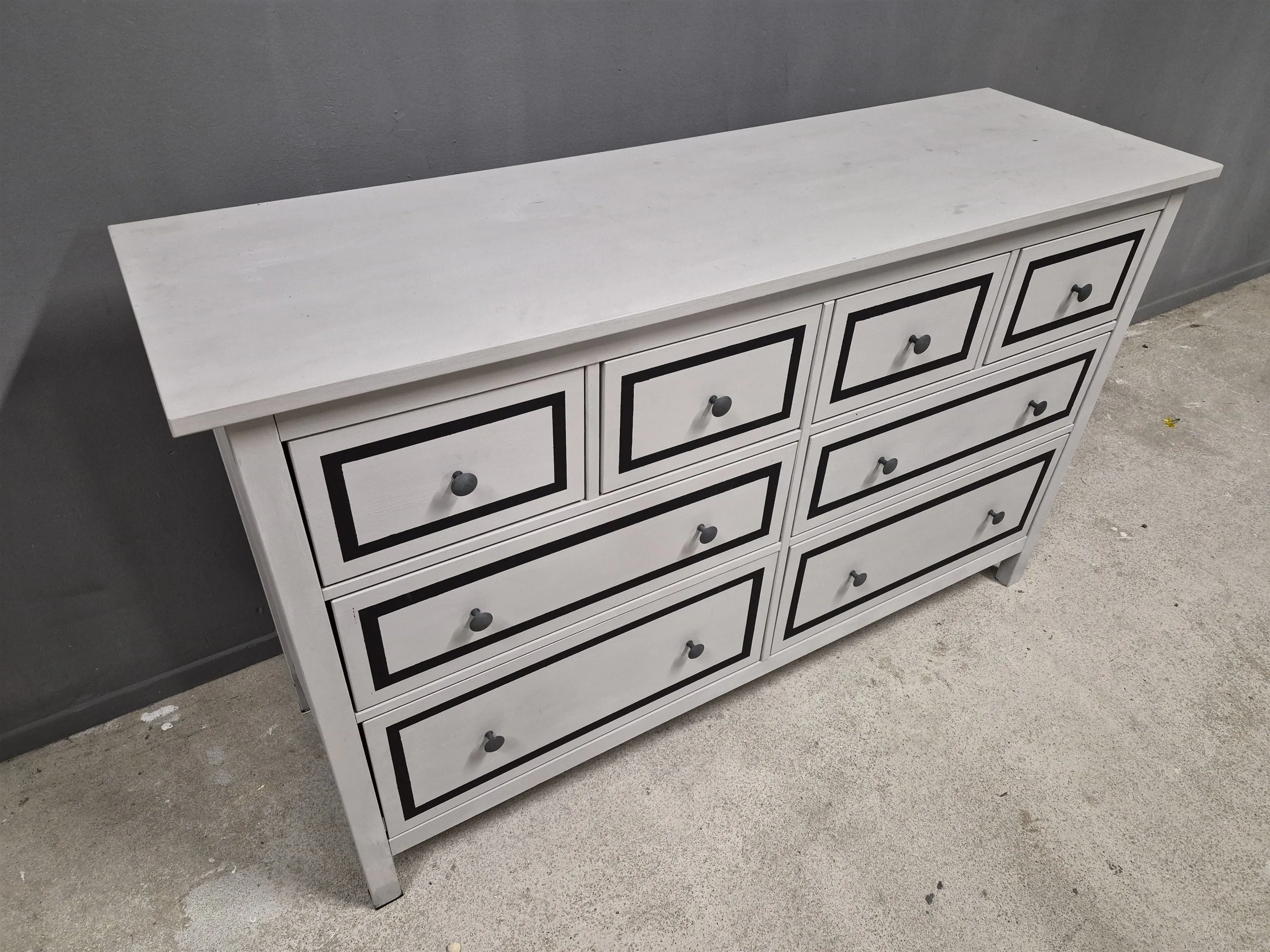 17504. Sideboard, furu, målad dekor, höjd 95 cm, bredd 160 cm, djup 50 cm