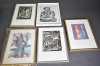 10158. Signe Marie Pedersen, bl.a akvarell, 5 st största mått 42 x 32 cm