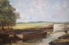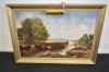 5542. Signerad E-bertz olja på duk, "Kanal", mått 115 x 80 cm