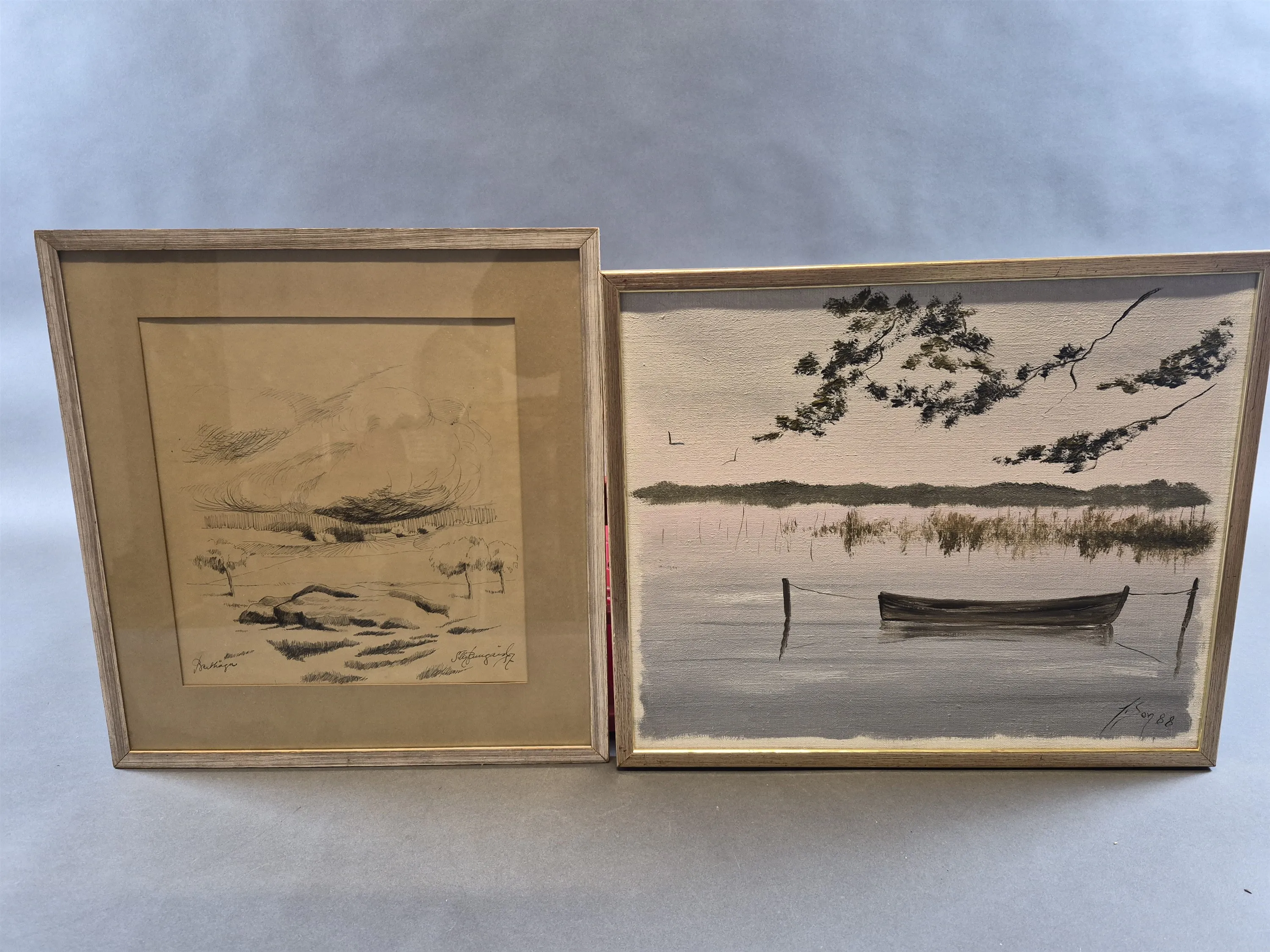 20360. Signerad olja på duk & signerad tuschteckning, största 49 x 42 cm