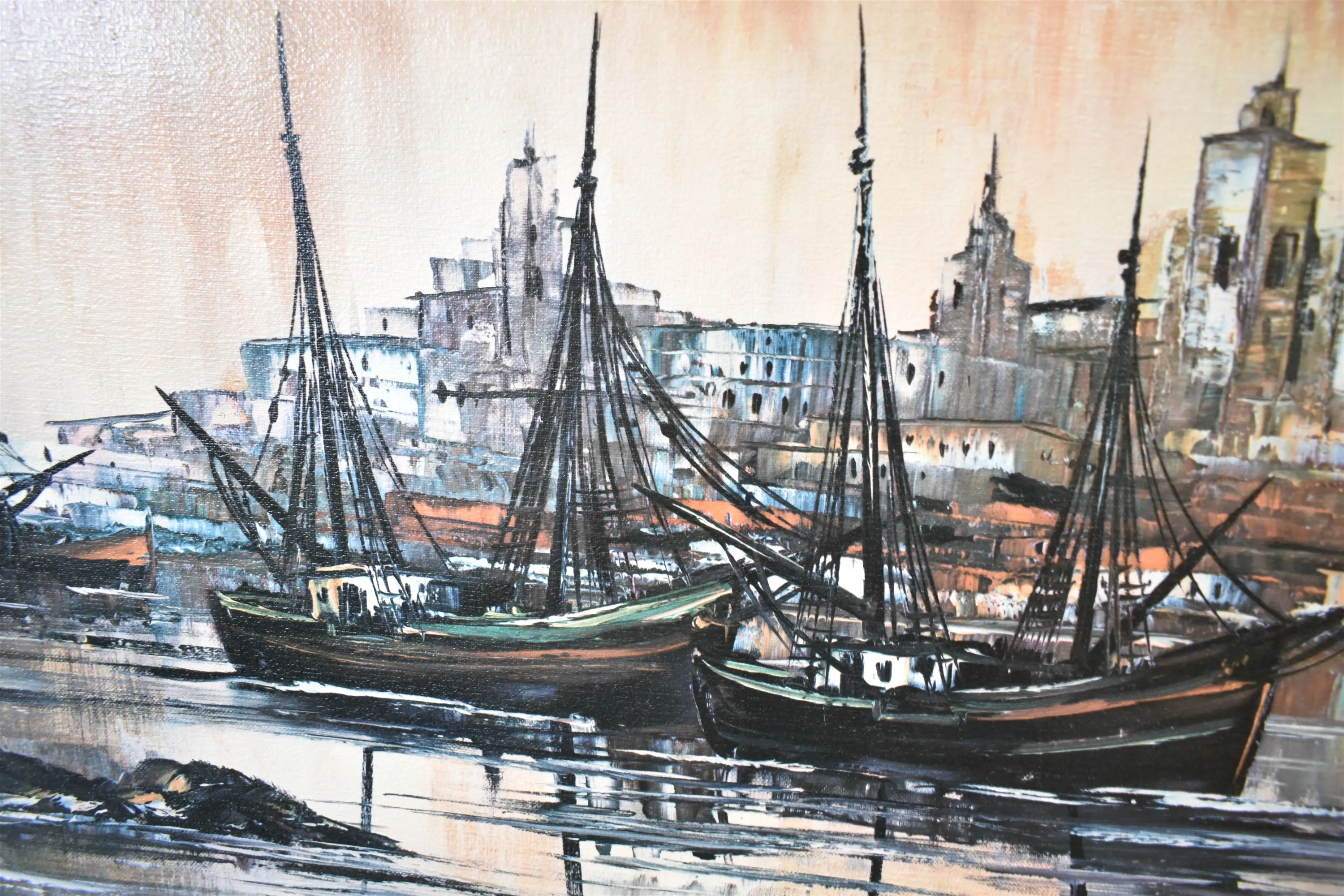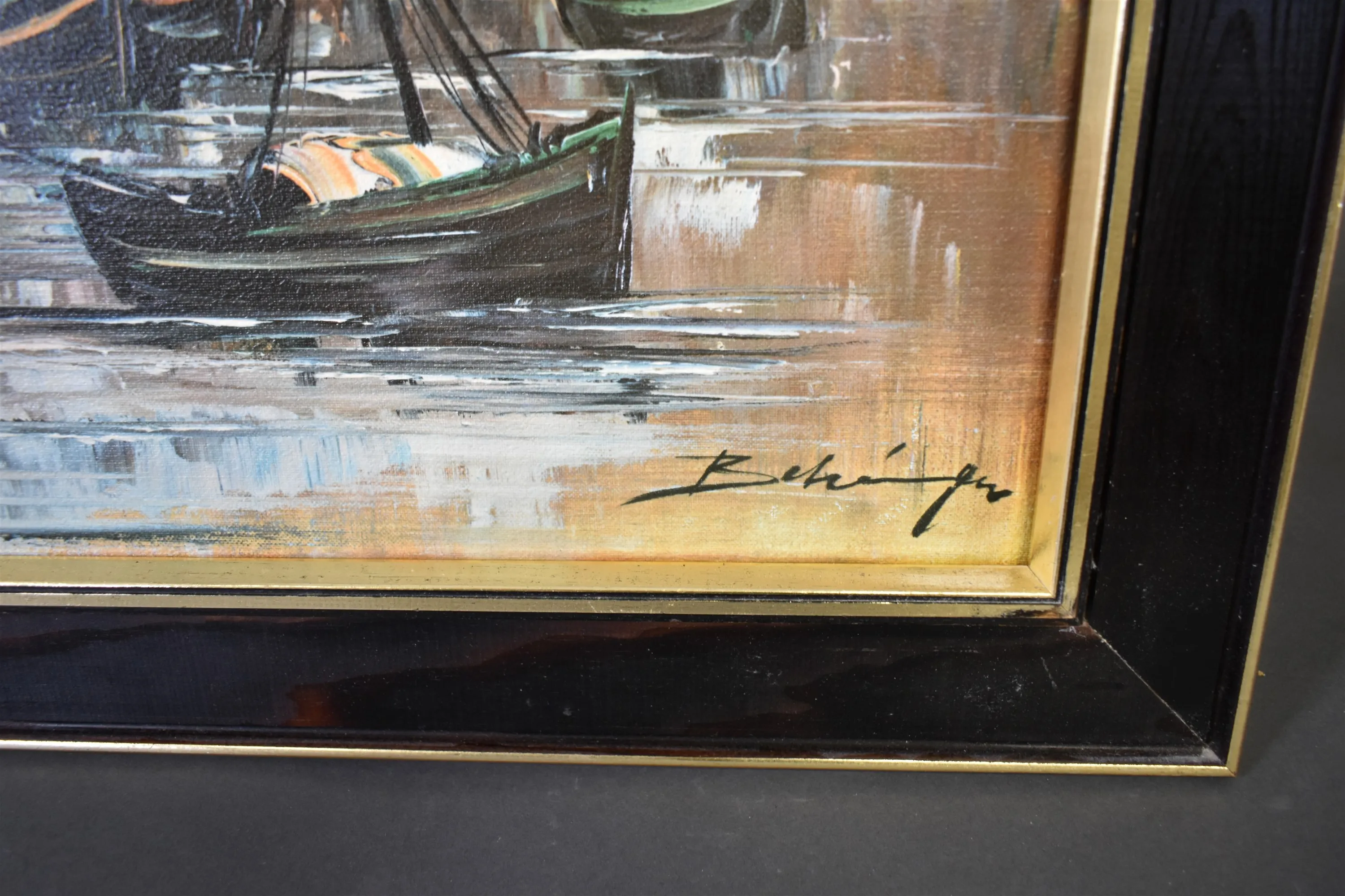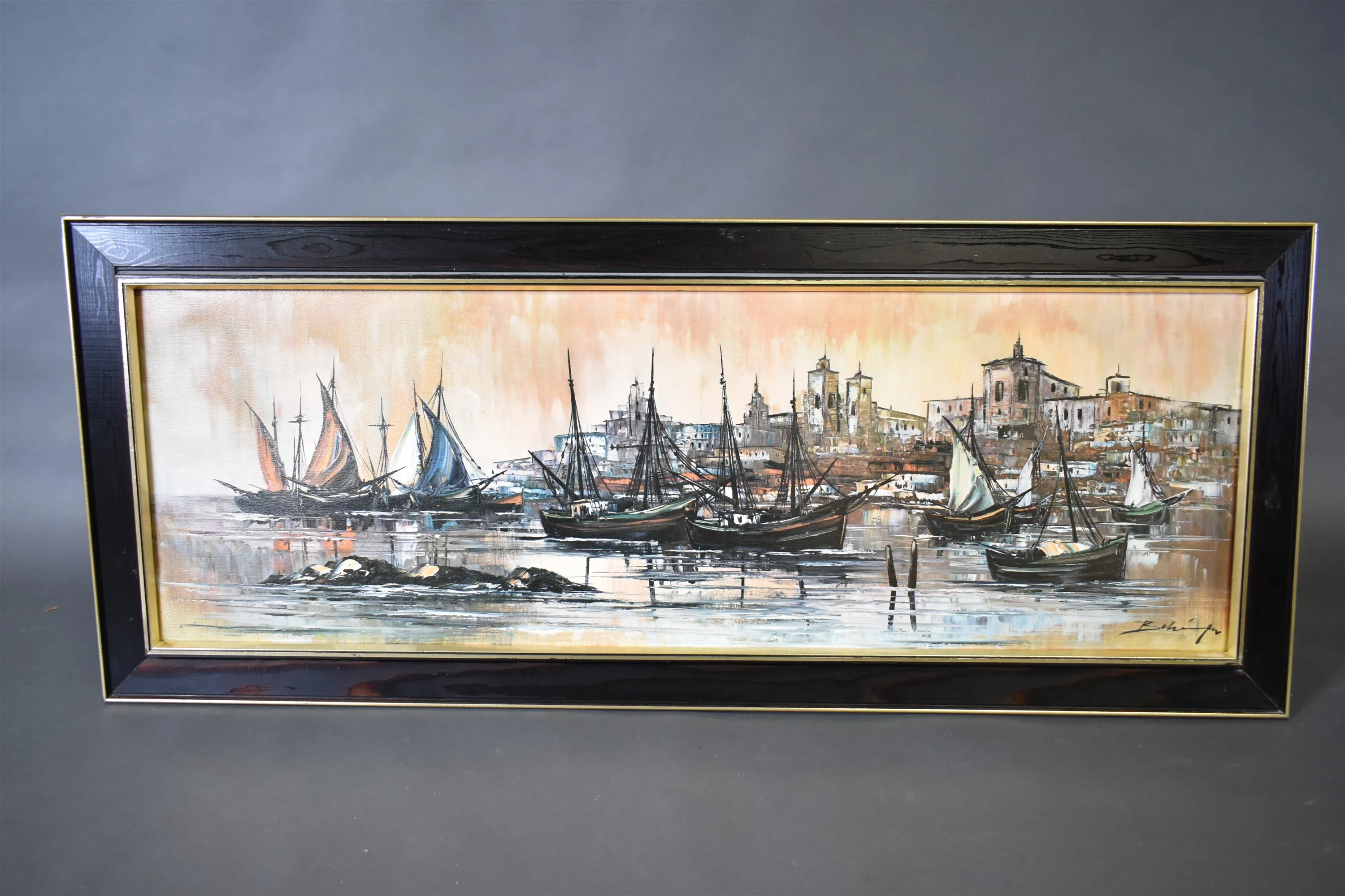 7775. Signerad olja på duk, "Fiskeläge", mått 132 x 55 cm