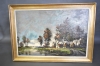 7276. Signerad olja på duk, "Hus vid sjö", mått 103 x 73 cm