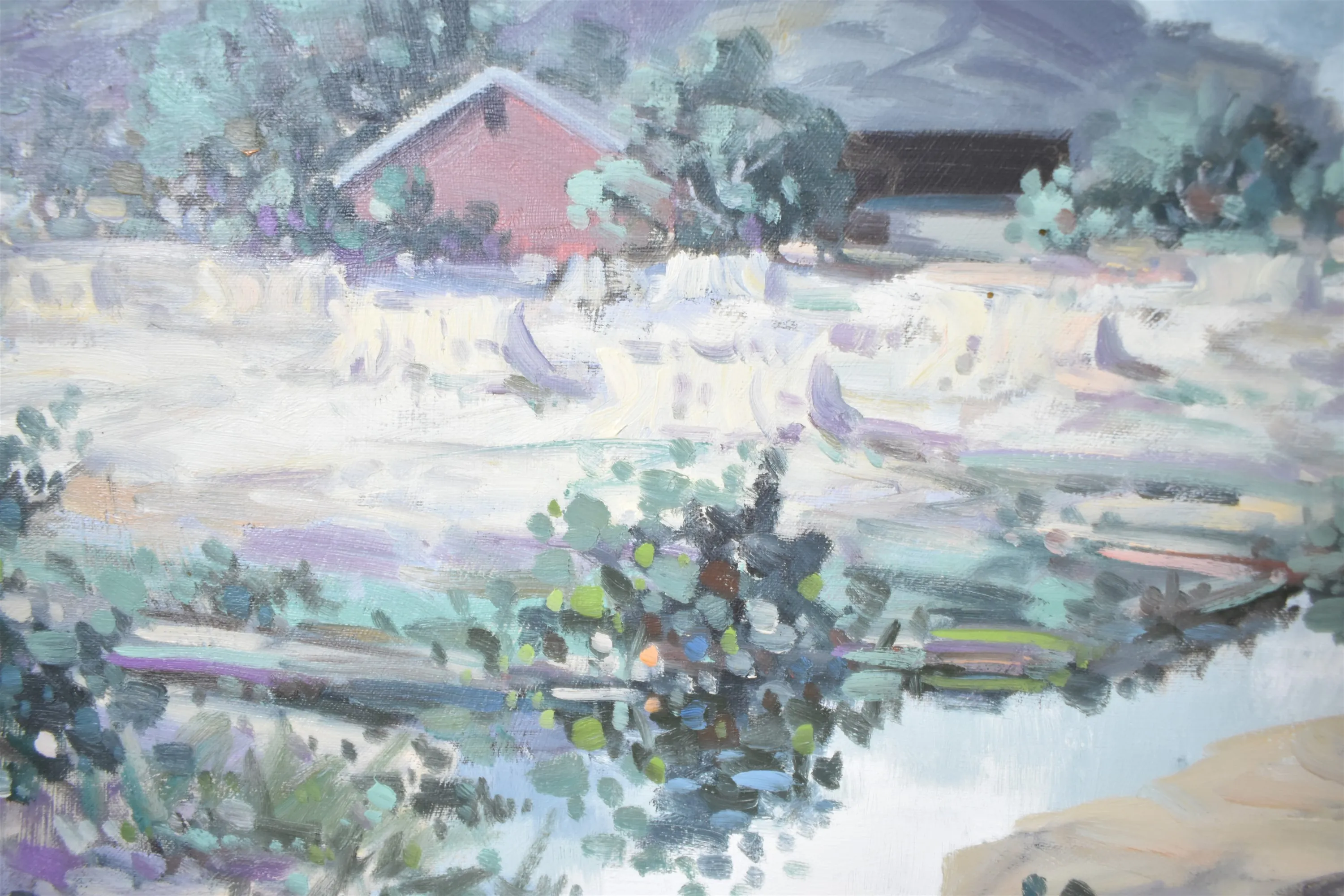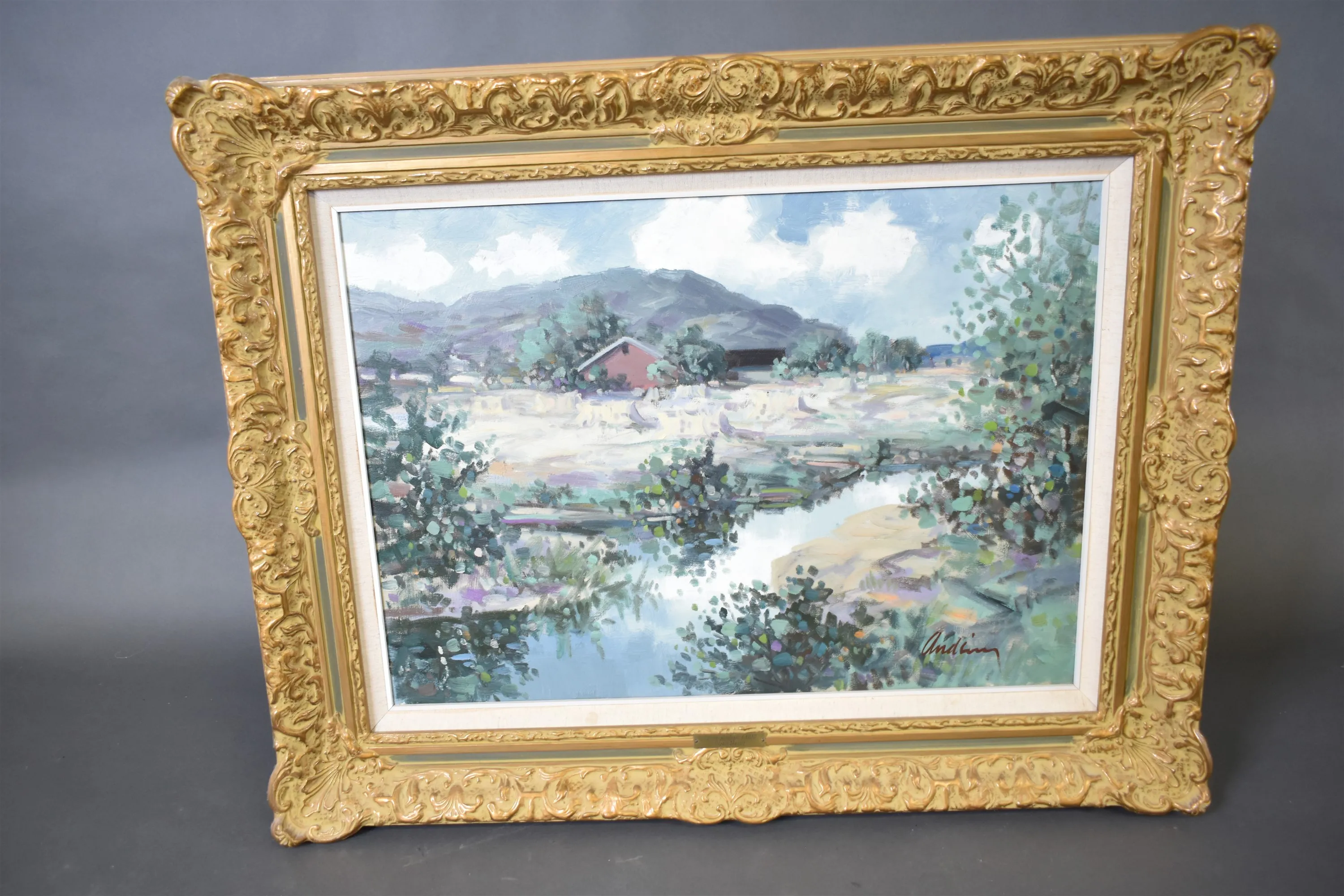 4387. Signerad olja på duk, motiv från Halland, mått 94 x 75 cm